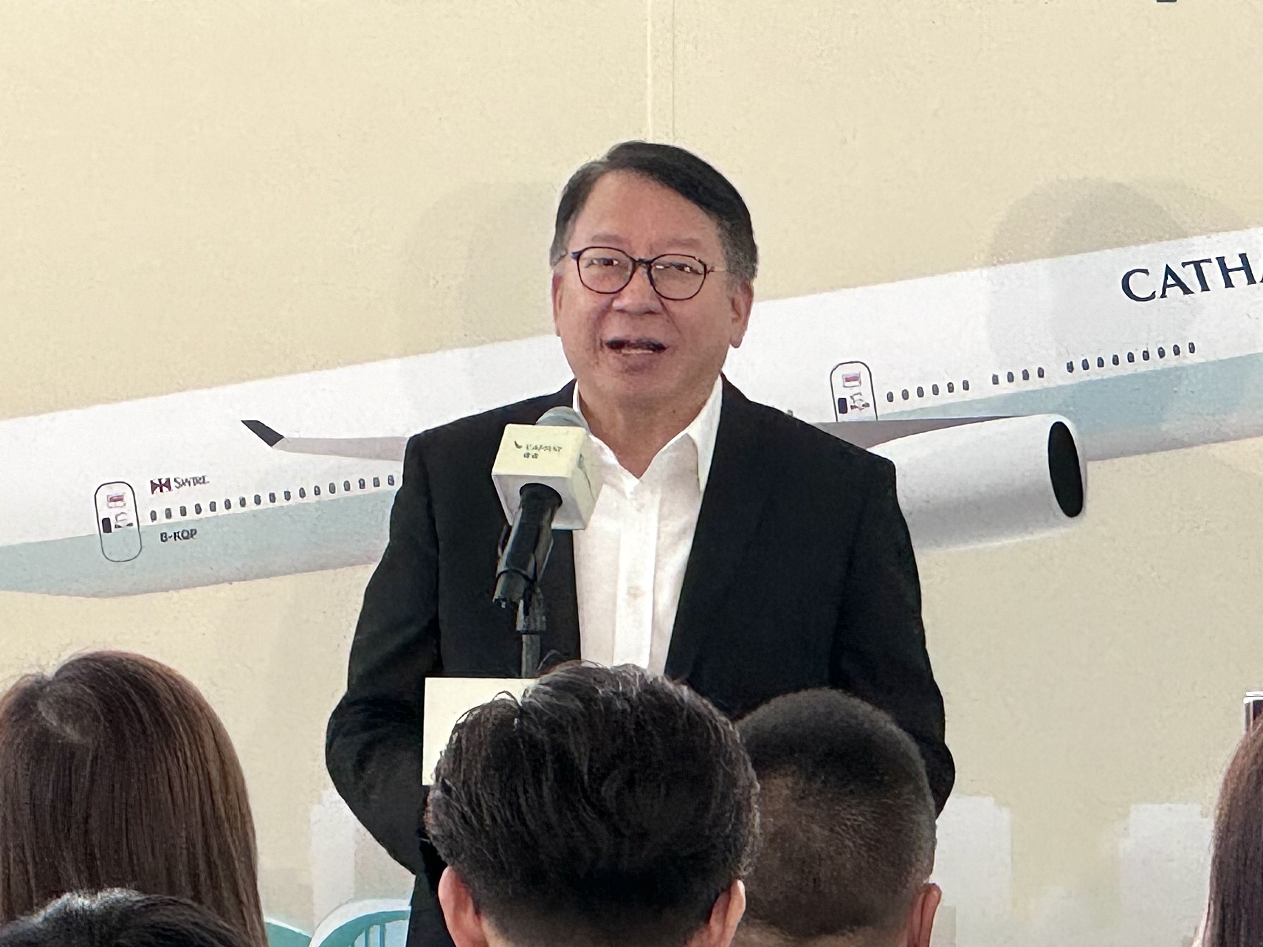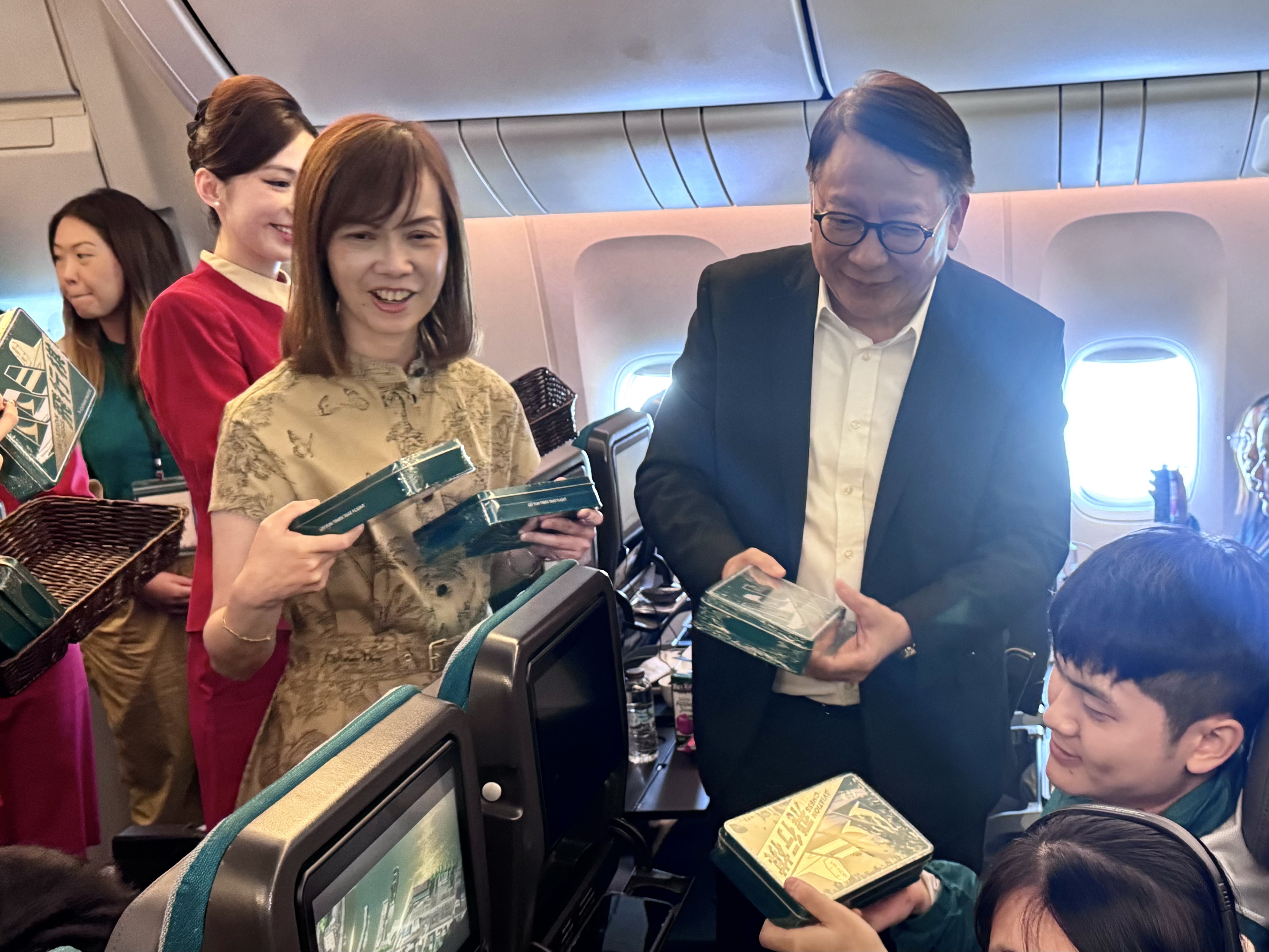 陳國基表示,國泰鼎力支持特區政府的「共創明『Teen』計劃」,計劃實施3年來精心安排40多項活動,為超過3600名師生提供航空體驗,眾多活動讓學員們更深入和全面地了解飛機構造、機組人員工作等航空資訊。此外,學員們透過活動不僅提升自信心,更能以積極的心態規劃未來,而今日「空中之旅」當中,不少首次搭乘飛機的學員亦能拓寬視野、增長見識。
