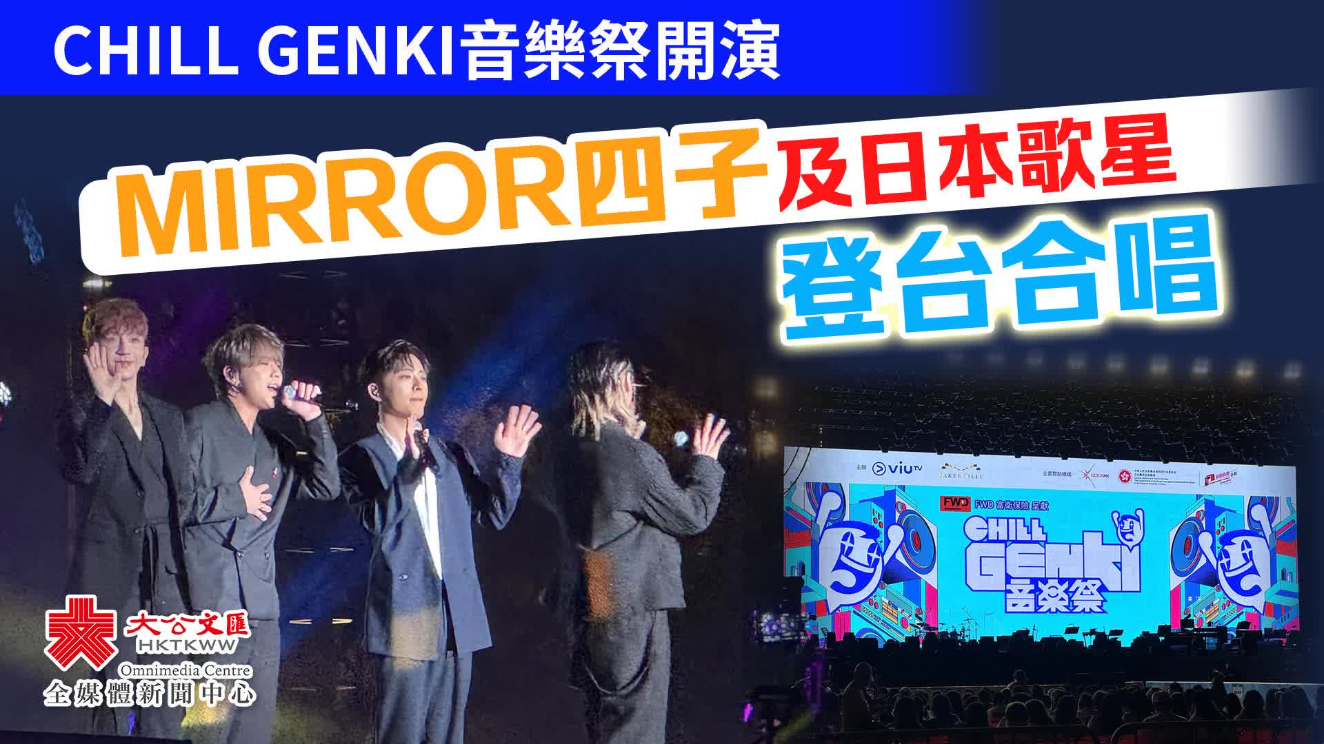 (大公文匯全媒體 記者 梁譯尹)由ViuTV音樂節目《CHILL CLUB》主辦的大型音樂盛事《FWD富衛保險呈獻CHILL GENKI音樂祭》今晚(11月1日)7時於西九文化區竹翠公園隆重舉行,現場有來自日本的當紅歌手以及香港本地歌手共同演繹兩地膾炙人口的歌曲,為樂迷帶來一場耳目一新、跨越語言界限的音樂盛宴。
