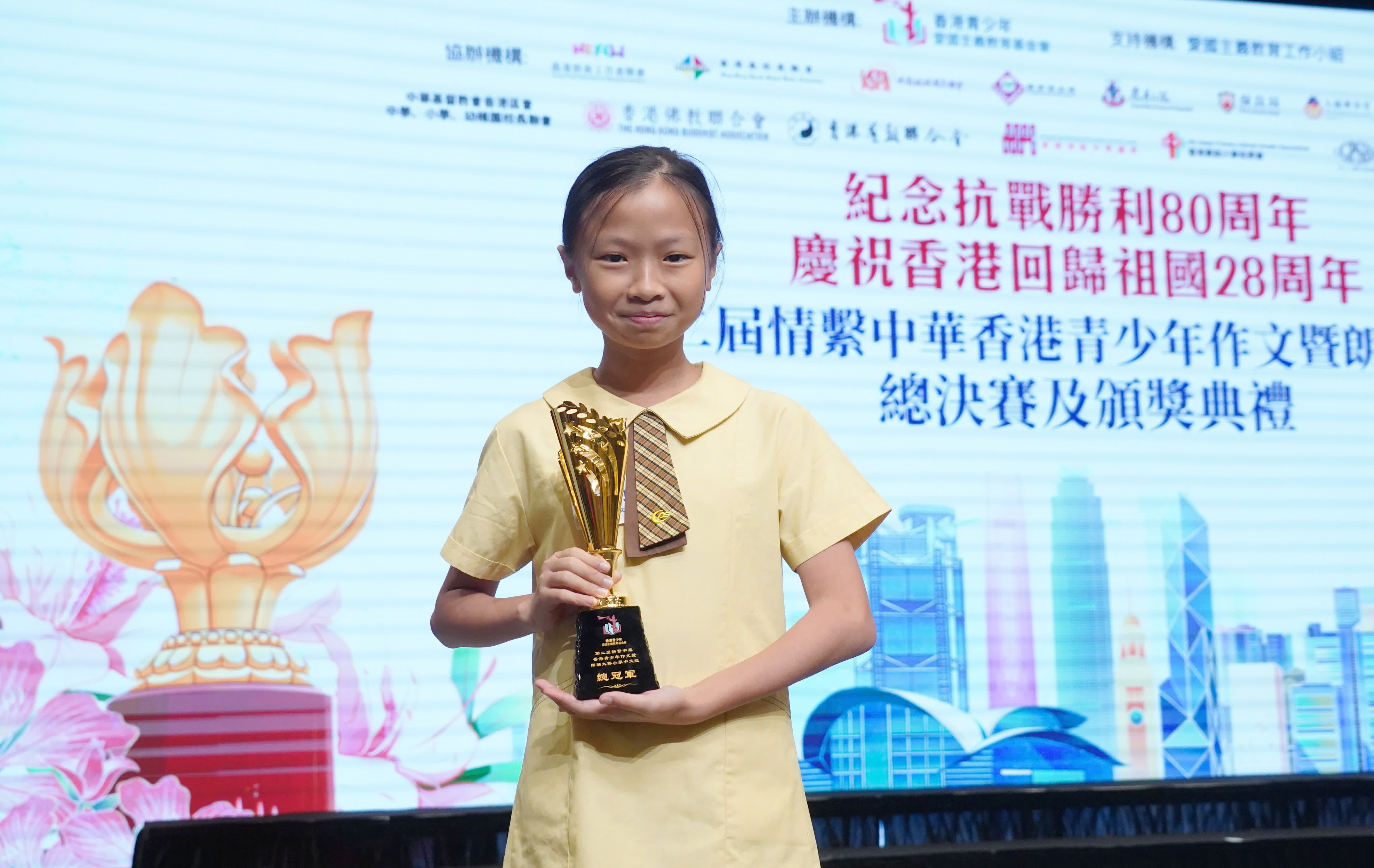 嘉諾撒小學(新蒲崗)的張梓琳獲小學中文組總冠軍。她向香港文匯報記者表示,取材是從自身經歷和旅遊見聞出發,將所見所感融入作文中。她在是次參賽搜集資料,令她對香港在離開祖國母親期間經歷的種種有更深入了解,感慨香港重回祖國懷抱時,那種「失而復得」的感動是極其特別而珍貴的經歷。