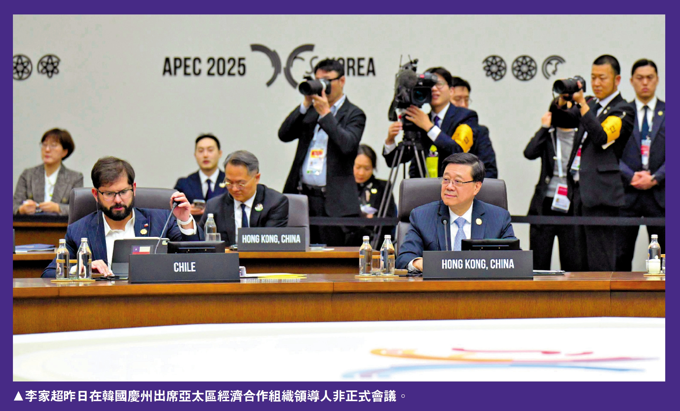 亞太經合組織成員經濟體共同通過和發表《2025年亞太經合組織領導人慶州宣言》,涵蓋亞太區共同面對的機遇與挑戰,支持亞太經合組織作為區域經濟合作的重要平台、加強亞太區的互聯互通,以及構建具韌性的供應鏈。李家超期待在這些領域與各成員經濟體開展務實合作,共同推動亞太區高質量經濟發展。