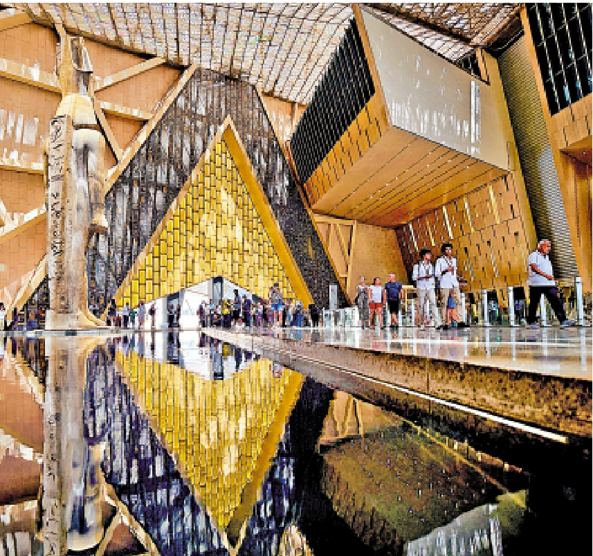 大埃及博物館坐落在首都開羅郊外著名的吉薩金字塔旁,佔地47萬平方米,博物館模仿金字塔外形。館內收藏涵蓋埃及七千年歷史的約10萬件文物,共設12個展廳,是全世界規模最大的單一考古主題博物館。大埃及博物館當天舉行開幕儀式,揭曉兩個專門陳列圖坦卡門文物的展廳。這是自1922年英國考古學家卡特發現圖坦卡門少年法老的陵墓後,其5000件珍藏首次完整面世,其中包括圖坦卡門的黃金面具、王座和戰車。