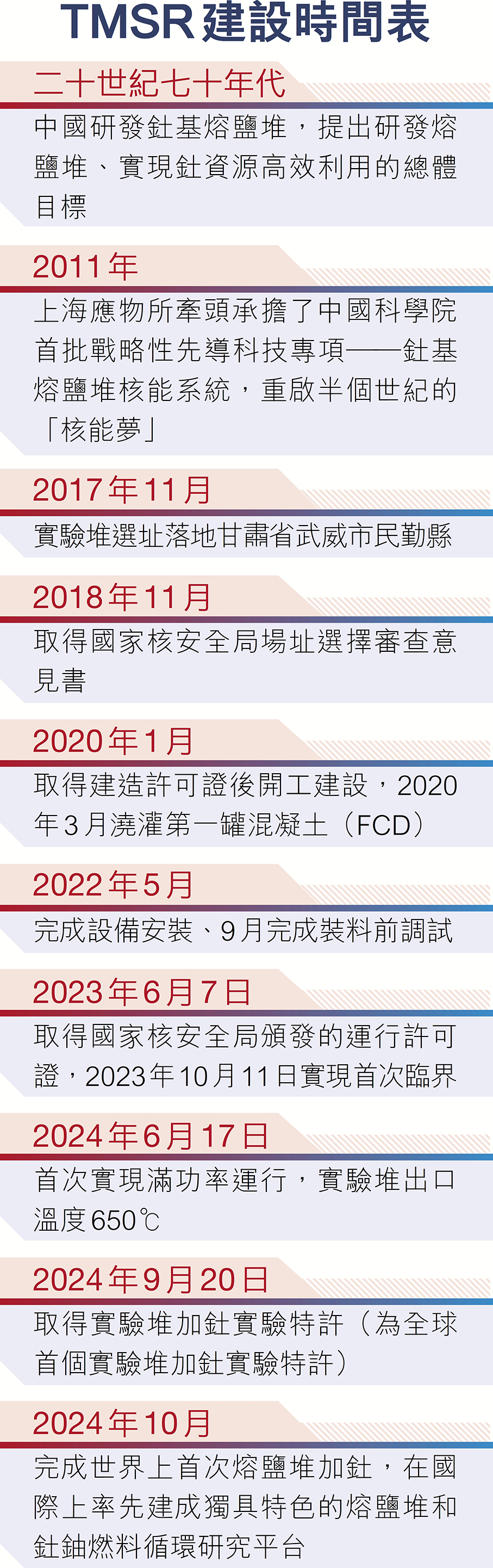 (香港文匯報記者 劉凝哲 北京報道)茫茫戈壁灘上,一座全新實驗堆的建成,使核燃料實現了從「鈾」到「釷」的多元化選擇。