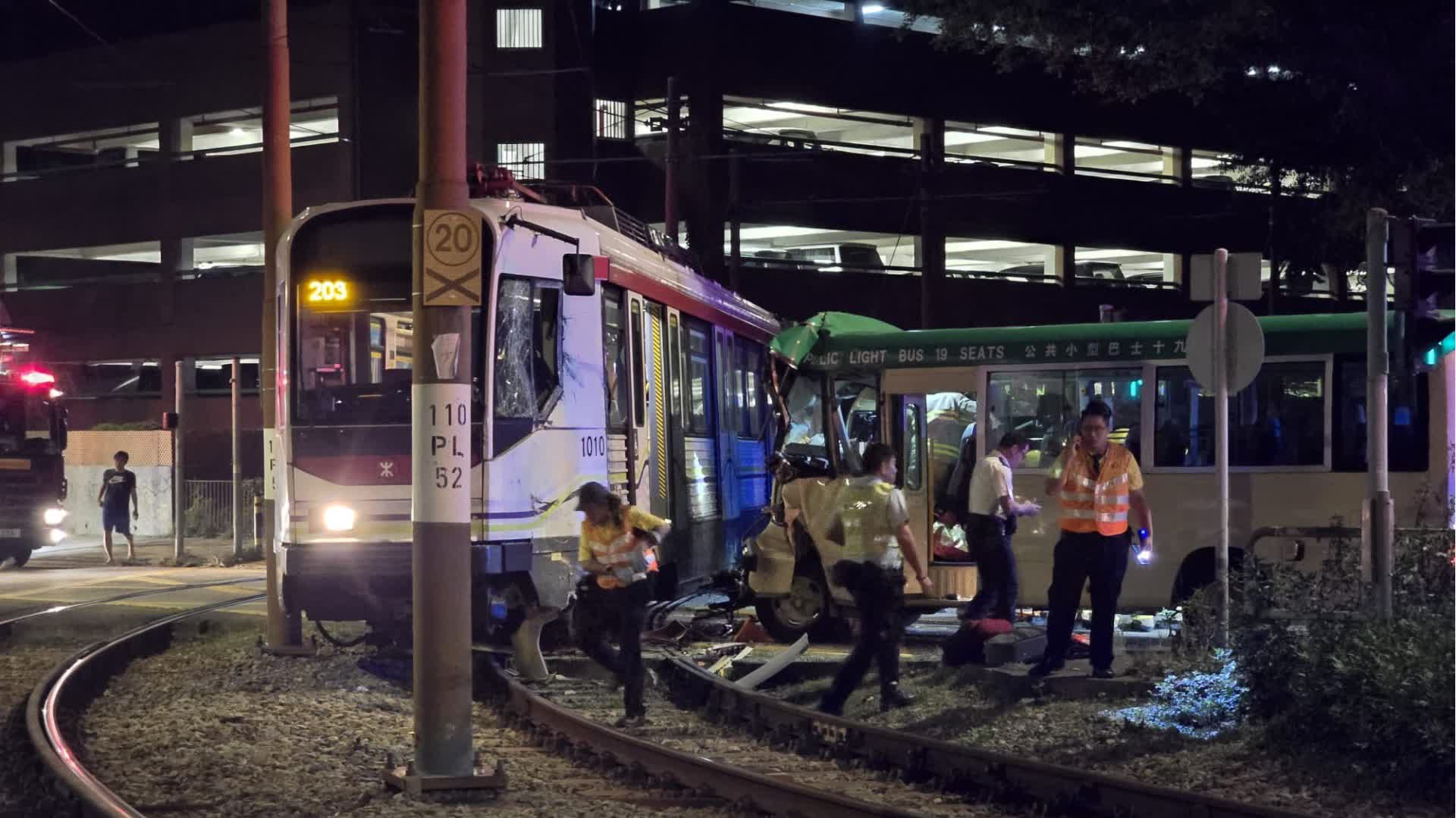 警方表示,今日(2日)凌晨0時48分,一輛輕鐵列車沿青麟路往屯門方向行駛,另一輛小巴沿青麟路往落馬洲方向行駛,當駛至青麟路時,小巴懷疑撞向輕鐵列車。消防接報到場,64歲馮姓小巴男司機腳部受傷被困,由消防救出,34歲何姓車長頭部受傷,兩車6男4女乘客受輕傷,年齡介乎16歲至66歲,12名傷者清醒被送往屯門醫院治理。