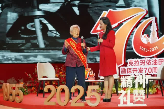 在「克拉瑪依精神禮讚」展演環節,克拉瑪依三代石油人與城市建設者代表上台交流,深情講述了克拉瑪依從無到有、從戈壁荒灘發展為新型工業城市的巨大變遷,展示了克拉瑪依各族群眾在「愛國奉獻、艱苦創業、民族團結、求真務實、追求卓越」克拉瑪依精神感召下迸發出的強大凝聚力,激勵新一代城市建設者接續奮鬥,為建設創新、宜居、美麗、韌性、文明、智慧的現代化人民城市貢獻力量。