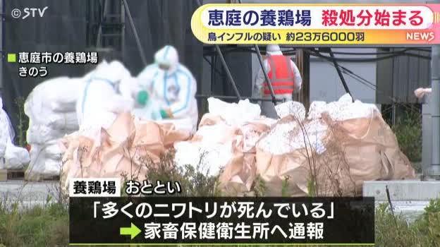 據報道,北海道政府透露,他們在11月1日接到惠庭市養雞場報告稱「有大量雞死亡」。11月2日的基因檢測結果顯示,當地出現了疑似高致病性禽流感的情況。