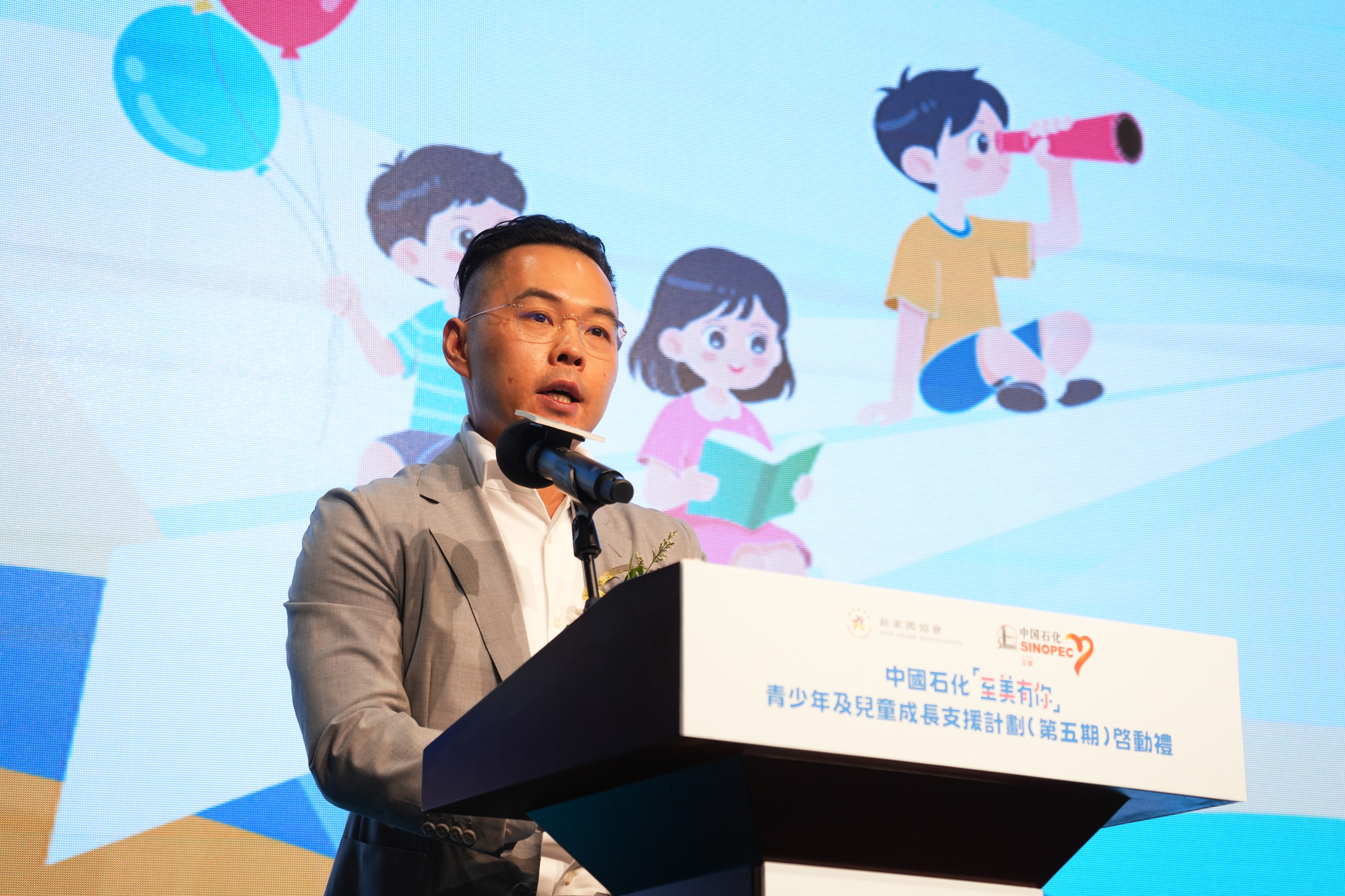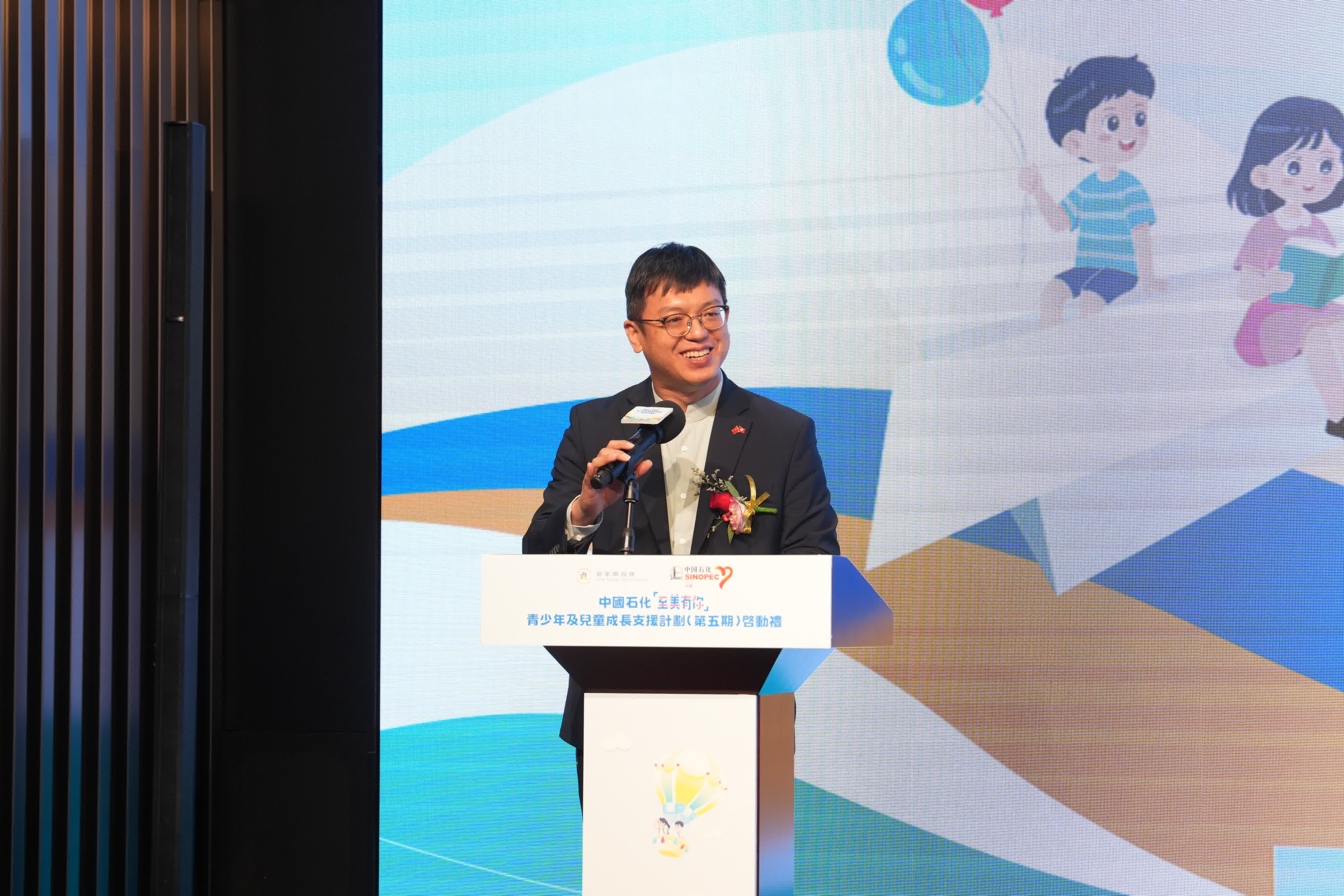 劉晉嵩表示,很榮幸見證中國石化啟動第五期 「至美有你」計劃,代表新家園協會感謝各界支持基層學童。協會致力聯合政、商、民各界協助基層學童的健康成長。該計劃自 2021年啟動,除向基層家庭學童提供學習支援等多方面幫助,還協助他們改善生活學習環境及質素,同時減輕家庭負擔。感謝特區政府與中國石化的大力支持,未來協會將繼續推動更多扶助項目,助力更多學童成長。