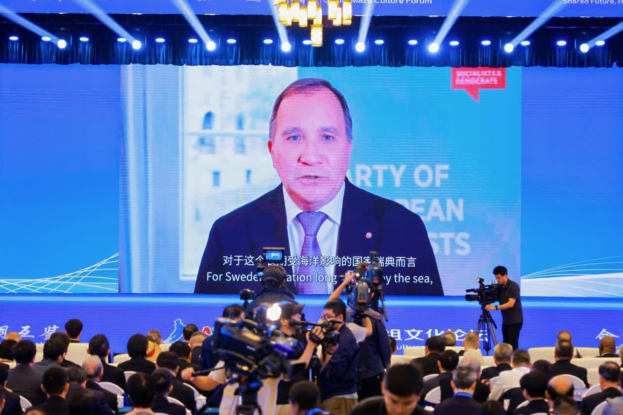 瑞典前首相斯特凡·勒文、聯合國發展系統駐華協調員常啟德、巴西聖保羅市議員喬治·哈托發來祝賀視頻。