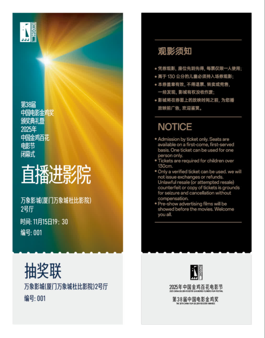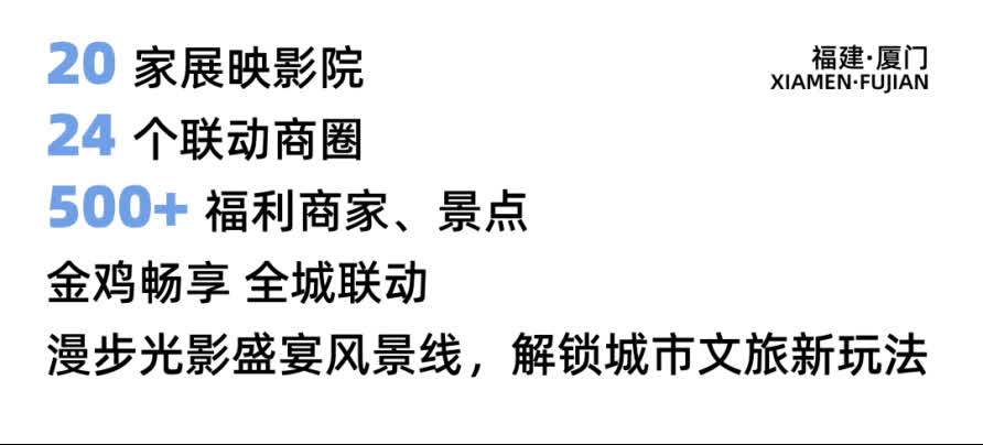 此外,11月15日當天,憑「廈金光影通」票券,可至全市20家合作影城,兌換觀影券觀看第38屆中國電影金雞獎頒獎典禮暨2025年中國金雞百花電影節閉幕式直播專場。