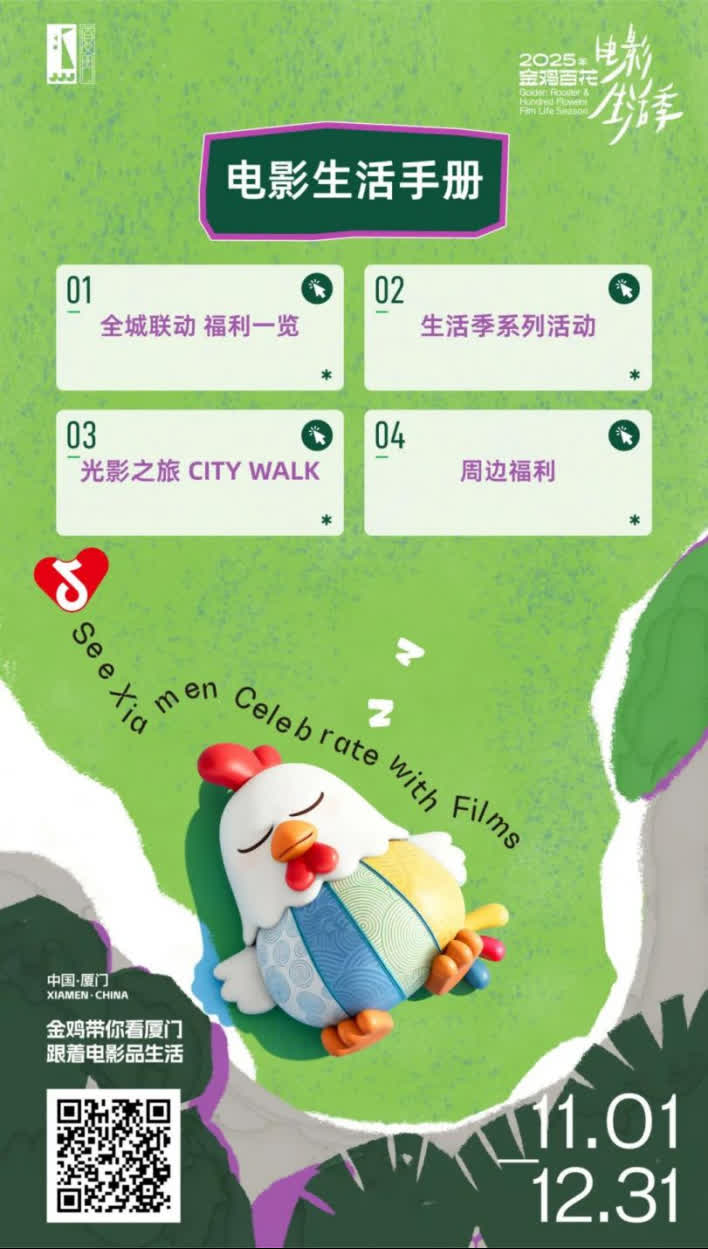 電子手冊包括展映及影城信息、票根福利指南、「金雞帶你看廈門·跟着電影品生活」光影之旅CITY WALK攻略、全城商家聯動福利等,影迷和市民遊客都可以解鎖影展期間的全城聯動玩法。