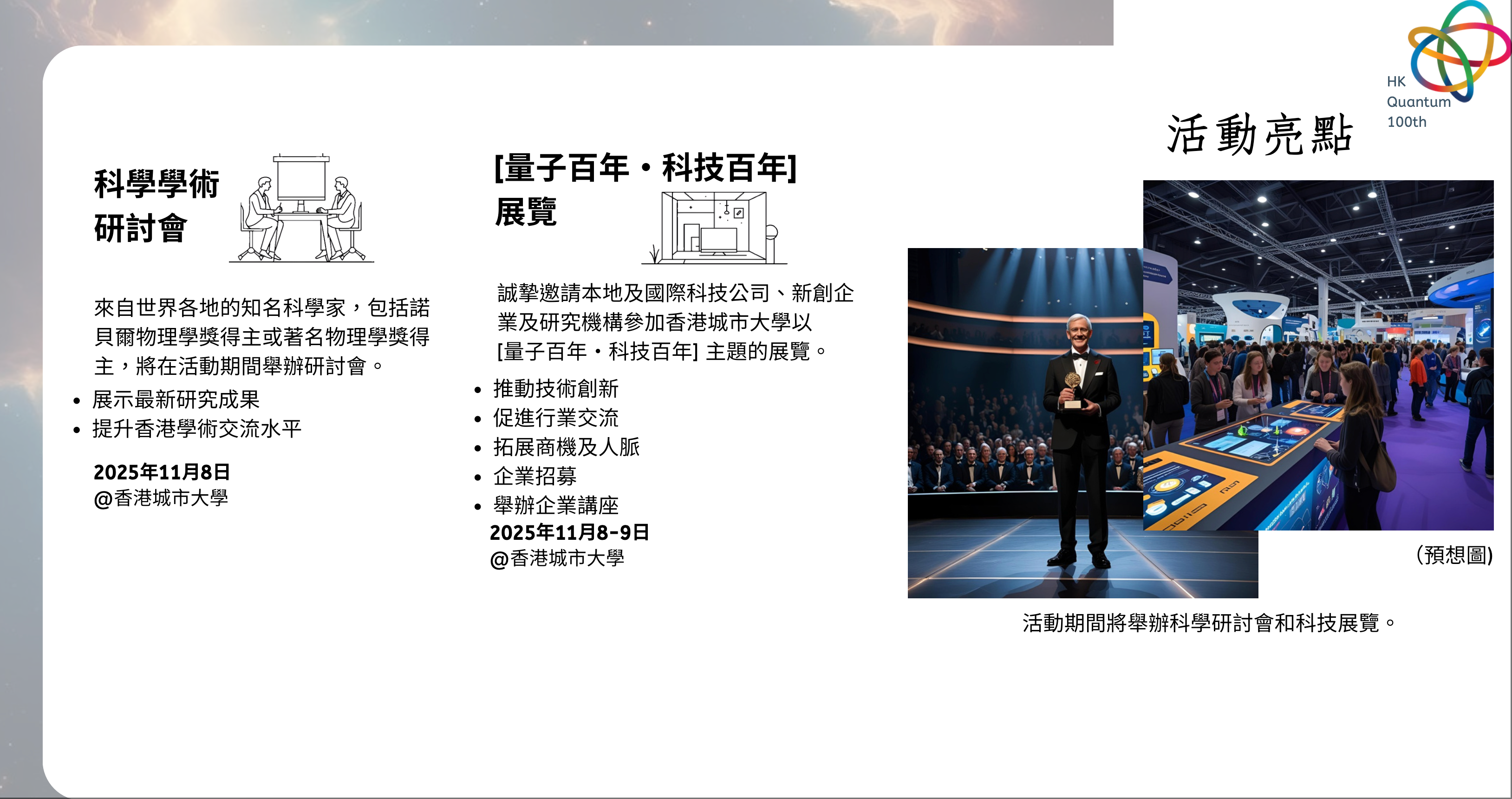 本次活動得到了香港城市大學的鼎力支持,受邀參與學術與科普演講的全球頂尖物理學家包括揭示量子力學幾何內涵的Berry教授和諾獎得主Novoselov教授。還透過教育局渠道,向中小學生與大學生推廣量子知識。活動現場將同步開展科普講座、量子領域專業報告,以及量子與哲學、音樂的跨界論壇,形成多維度的科普生態。
