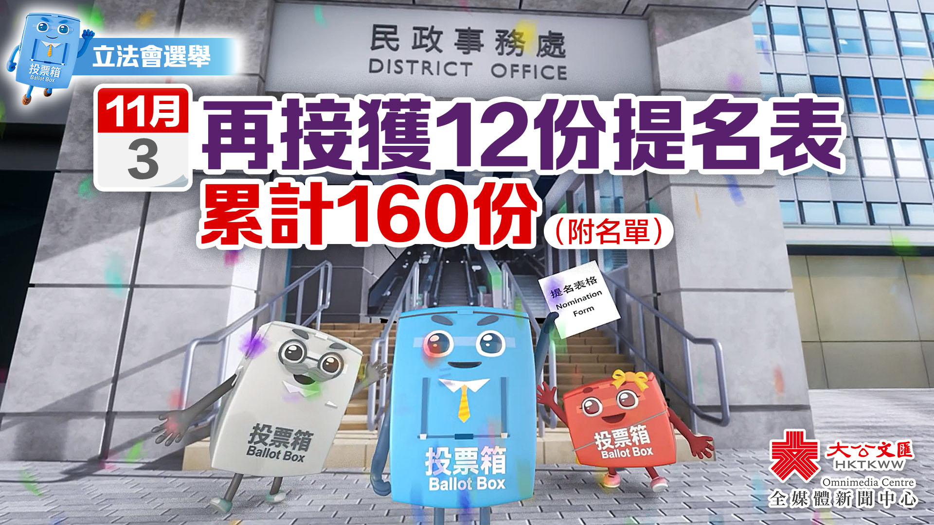 提名期10月24日開始,至11月6日結束,至今共接獲160份提名表格。