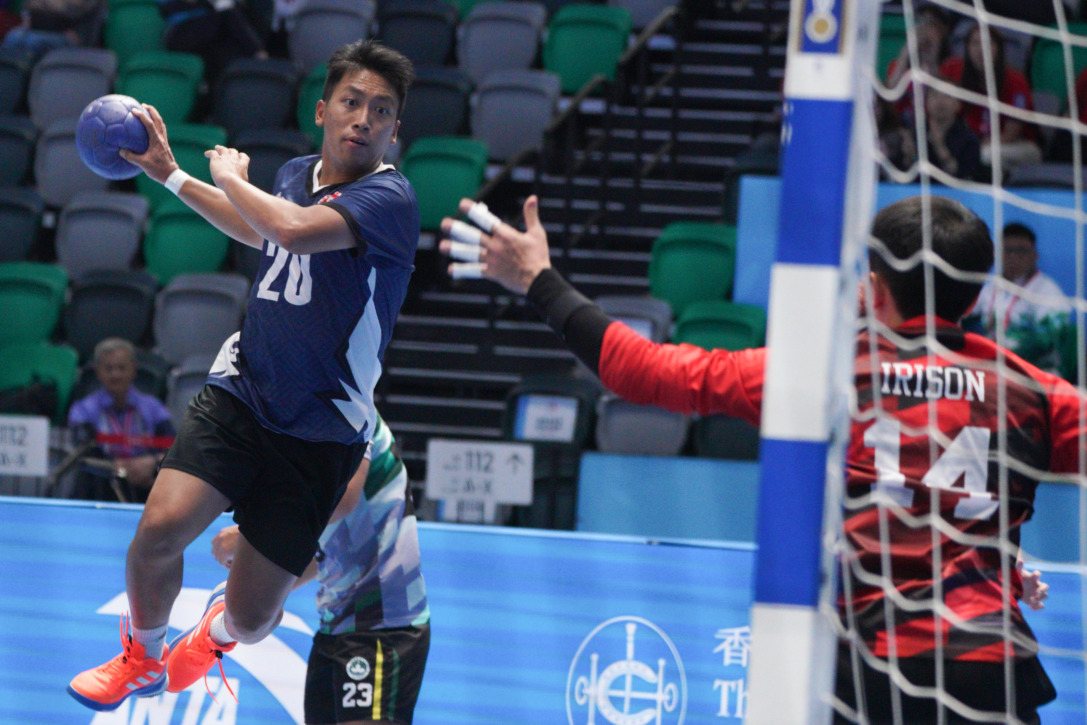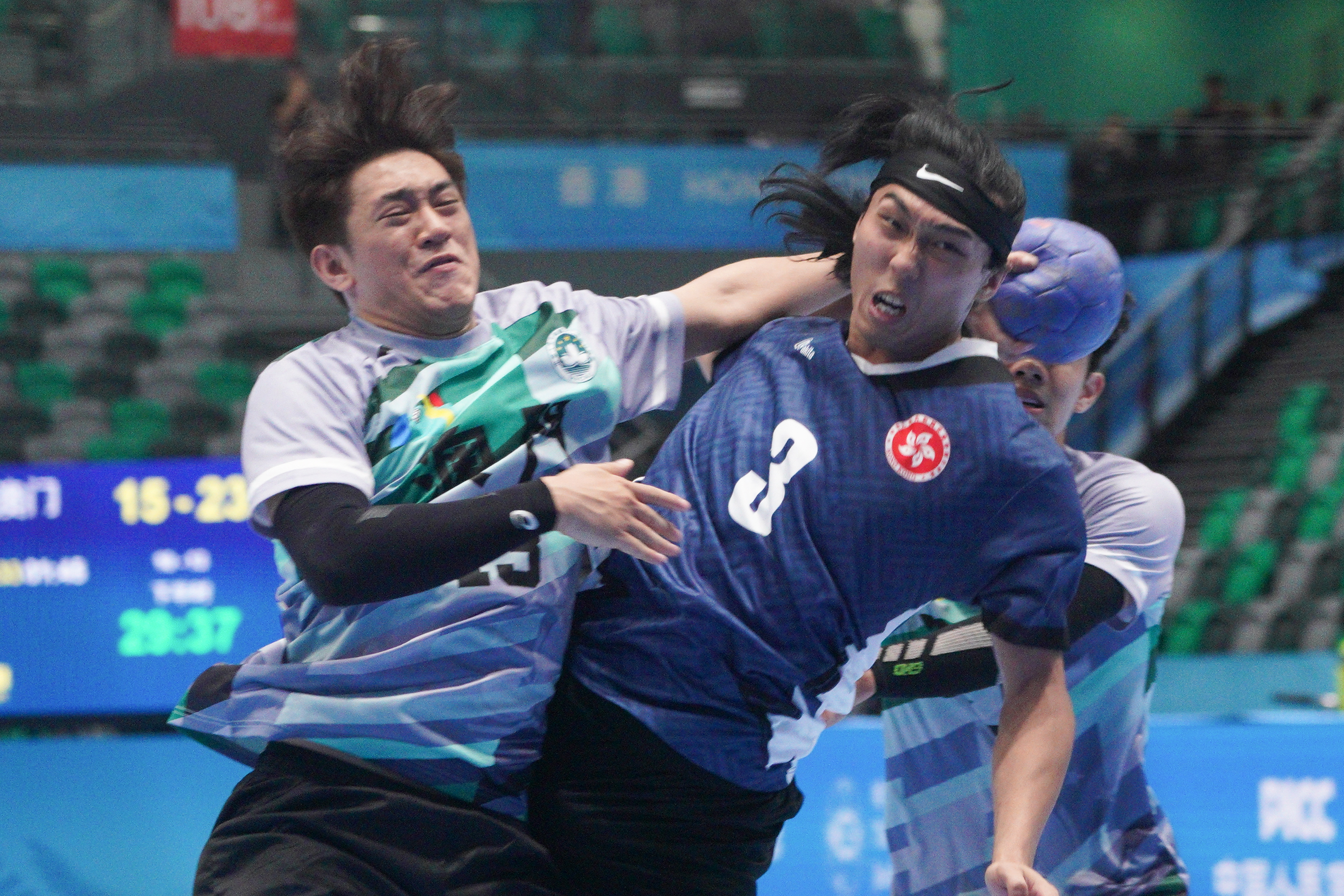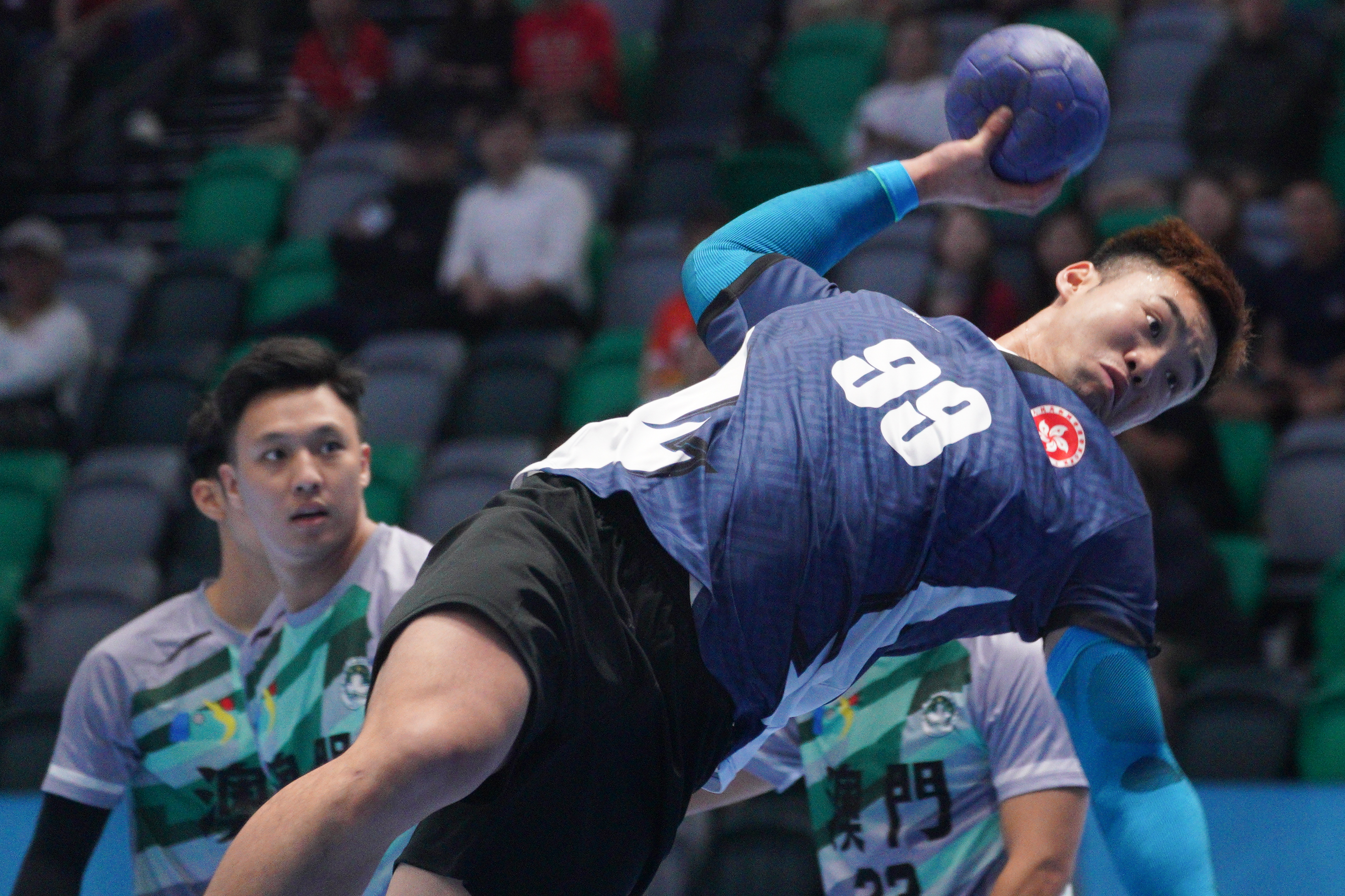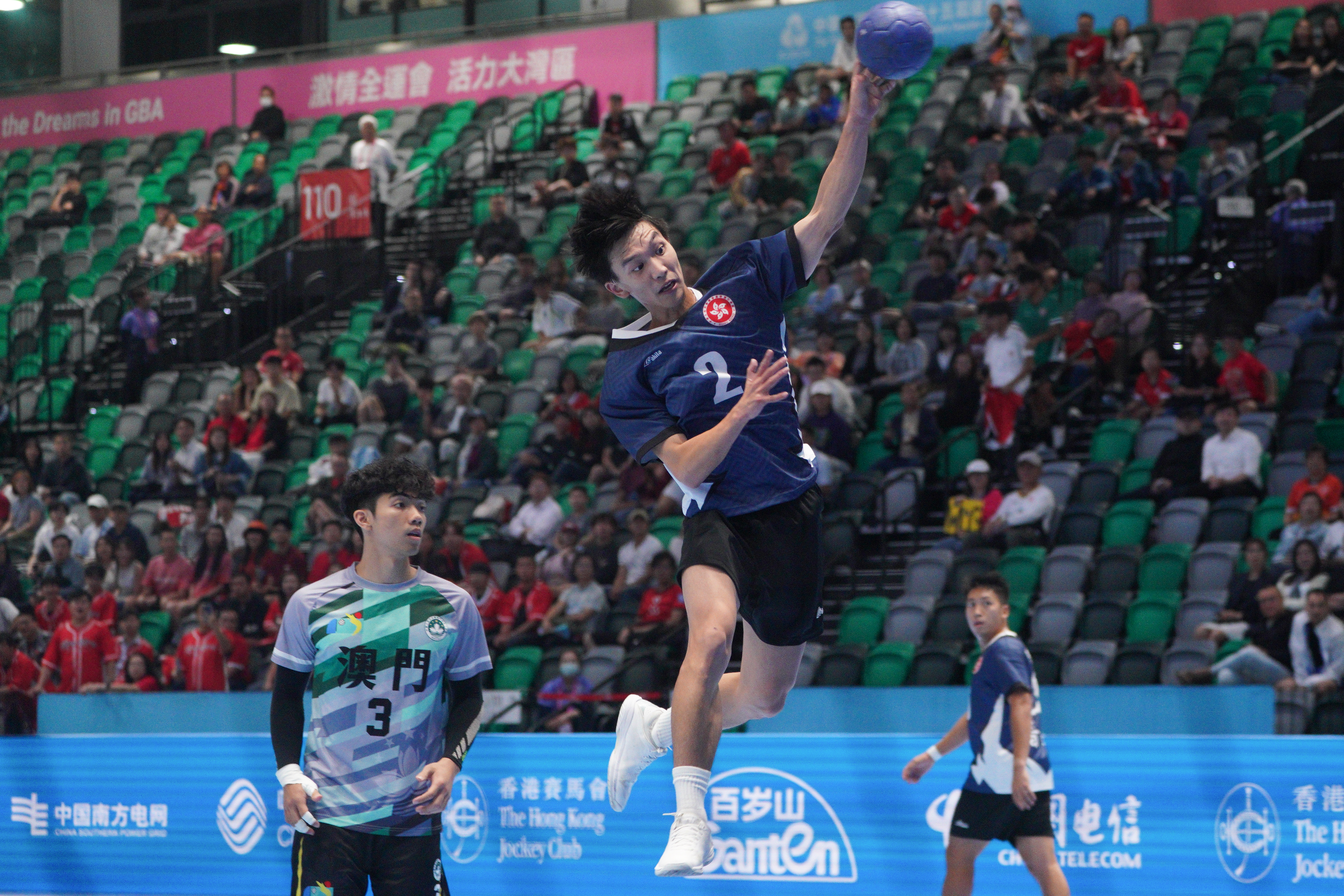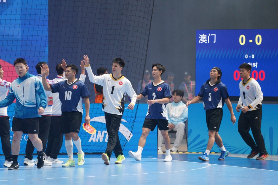 去到今日對澳門,港隊雖然先被對手攻破大門,但及後憑郭斯嗚、謝永輝及陳梓朗接連得分反超前7∶4,半場以13∶10領先。去到下半場,港隊繼續積極進攻,陳梓朗連轟兩球得分,加上黃澤橋連得3分,港隊拉開比數至19∶11,並最終以24∶15擊敗澳門,小組賽兩連勝,由於澳門隊三戰全敗,港隊已篤定以前4名出線。
