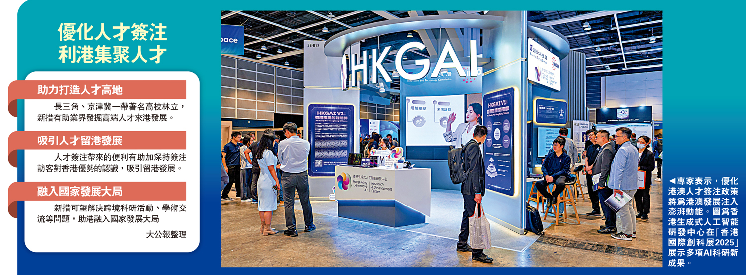 「規劃建議賦予香港鞏固提升國際金融、航運、貿易中心地位及建設國際創新科技中心的重要使命,人才是實現這一目標的根本保障。」黎學寧表示,國家新舉措將規劃藍圖轉化為具體便利。其中,往來港澳人才簽注政策的擴圍是關鍵突破,即在粵港澳大灣區基礎上,將實施範圍延伸至長三角、京津冀全域及全國所有自由貿易試驗區,覆蓋傑出人才、科研、文教等六類群體,這將為更多內地高端人才往來港澳掃清障礙。