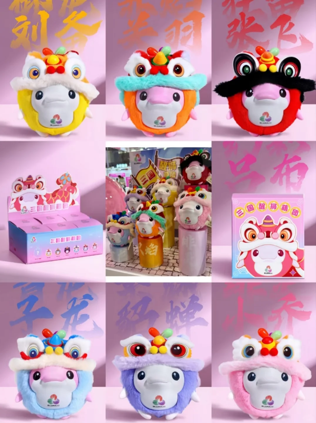 「御龍劉備」、「赤焰關羽」、「狂雷張飛」、「清影子龍」、「緋靈小喬」、「紫魅貂蟬」、「幻彩呂布」——七款萌趣生動的公仔通過巧妙的配色詮釋着忠、勇、仁、孝、義的傳統特質。