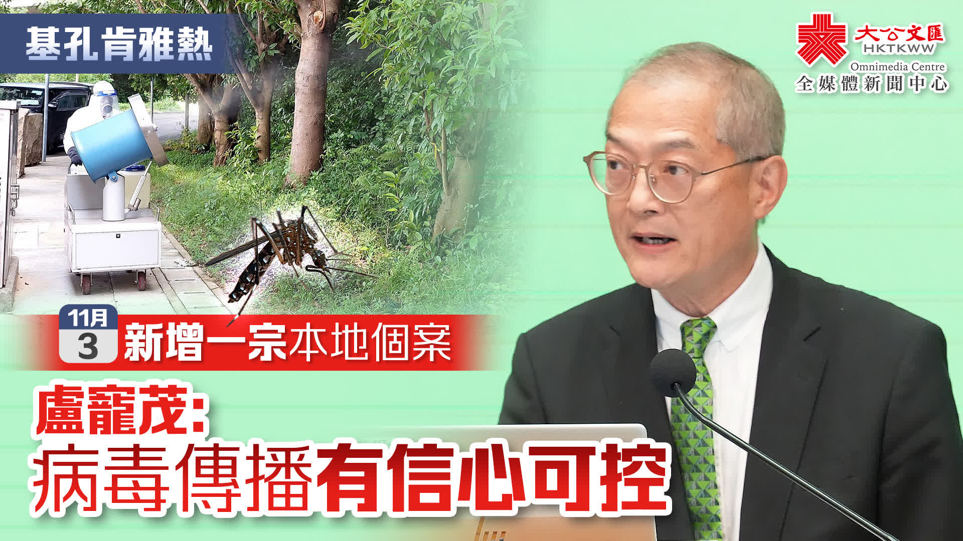 大公文匯全媒體報道,本港昨日(3日)再新增1宗基孔肯雅熱本地個案。醫務衞生局局長盧寵茂今日(4日)表示,只要大家合作,做好控蚊措施,當局就很有信心可以控制病毒傳播。