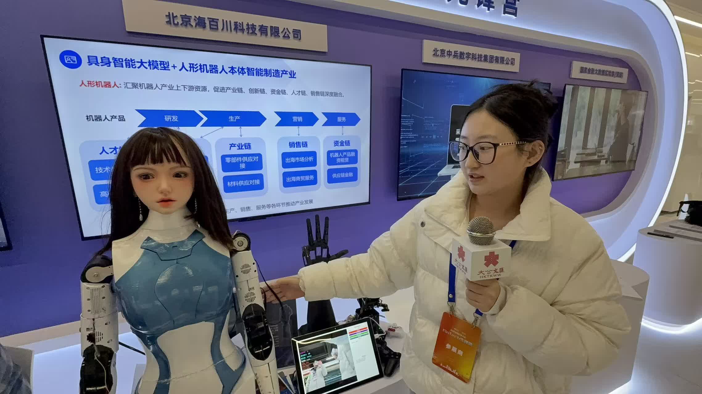 記者在現場看到,FinTech先鋒營活動把區域科技企業的創新「硬實力」直接擺上台。北京海百川科技有限公司劉琪敏介紹了展出的兩款極具特色的產品,分別是半身機器人和靈巧手。半身機器人具備說話、揮手、臉部表情功能,貼近生活的功能性質使其可主要用於文旅、教育、導覽服務以及前台接待服務,覆蓋多個生活角度的常態化服務和協助工作。靈巧手則可以通過捕捉手部的動作,進行高自由度的活動它,靈活程度能做到實時捕捉。劉琪敏提到,公司參與此次活動也是看重西城區作為金融中心,希望能夠藉此機會展示產品和吸引融資。「現在西城區越來越有吸引力,公司也希望遷到西城發展。」