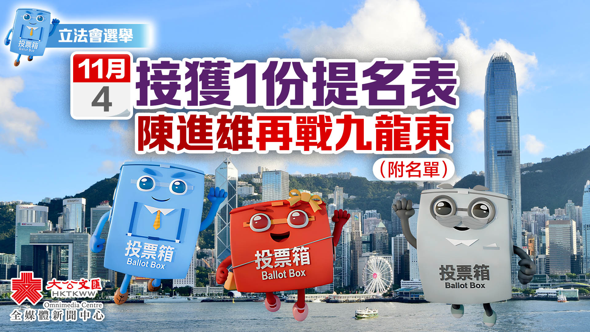 大公文匯全媒體報道,2025年立法會換屆選舉的10個地方選區、28個功能界別以及選舉委員會界別的選舉主任今日(11月4日)共接獲1份提名表格。提名期10月24日開始,至11月6日結束,至今共接獲161份提名表格。