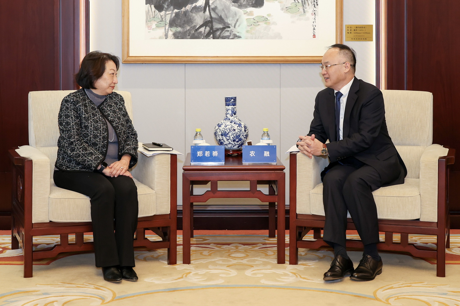 據中共中央港澳工作辦公室、國務院港澳事務辦公室網站消息,11月3日下午,中央港澳工作辦公室、國務院港澳事務辦公室副主任農融在北京會見國際調解院秘書長鄭若驊一行。