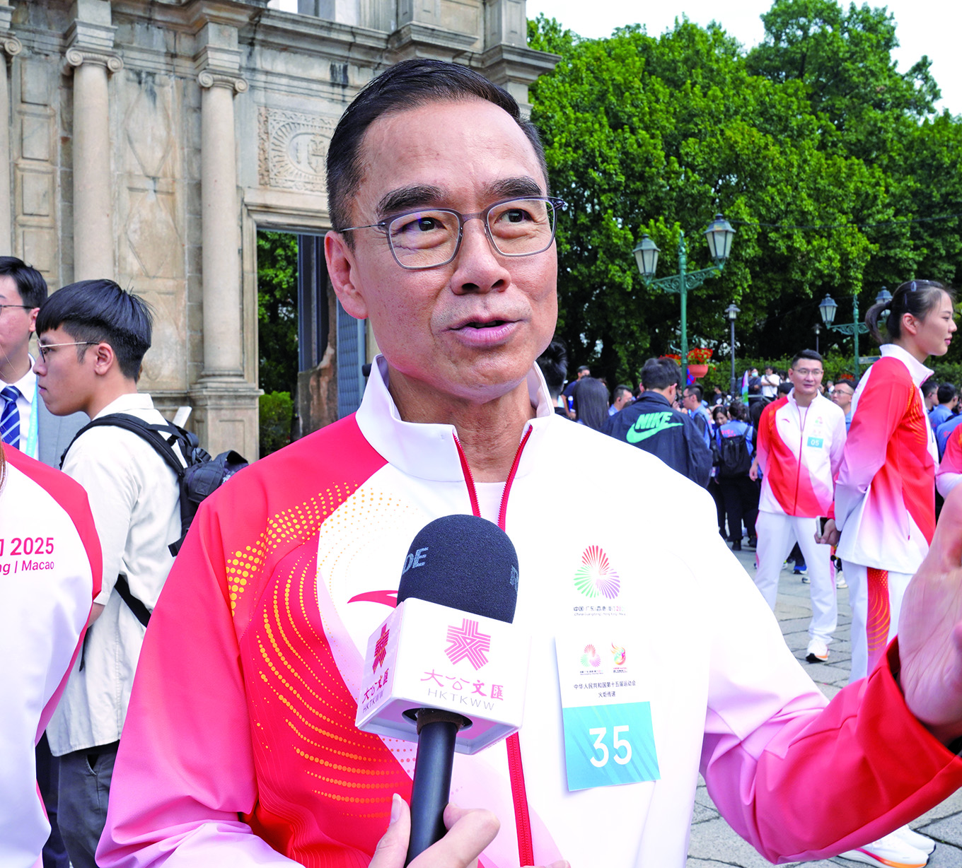很榮幸能參與意義重大的火炬傳遞,澳門藉著全運會契機,將澳門世遺地標與體育精神結合,向全球展現澳門魅力。澳門作為「體育之城」,已具備舉辦大型賽事的場地與條件,未來將持續投入資源,推動體育與旅遊產業深度融合。