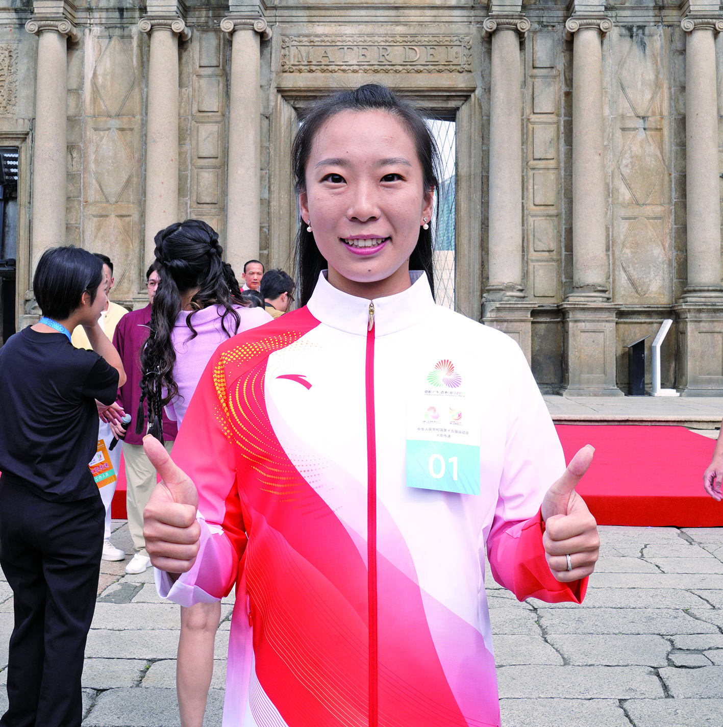 成功點燃聖火感到無比榮幸,跑上大三巴階梯時心情特別緊張。聖火象徵著中華民族團結一致、永不熄滅的力量,同時代表運動員的決心,接下來比賽將會全力以赴,力爭在主場為澳門特區爭取最高榮譽。