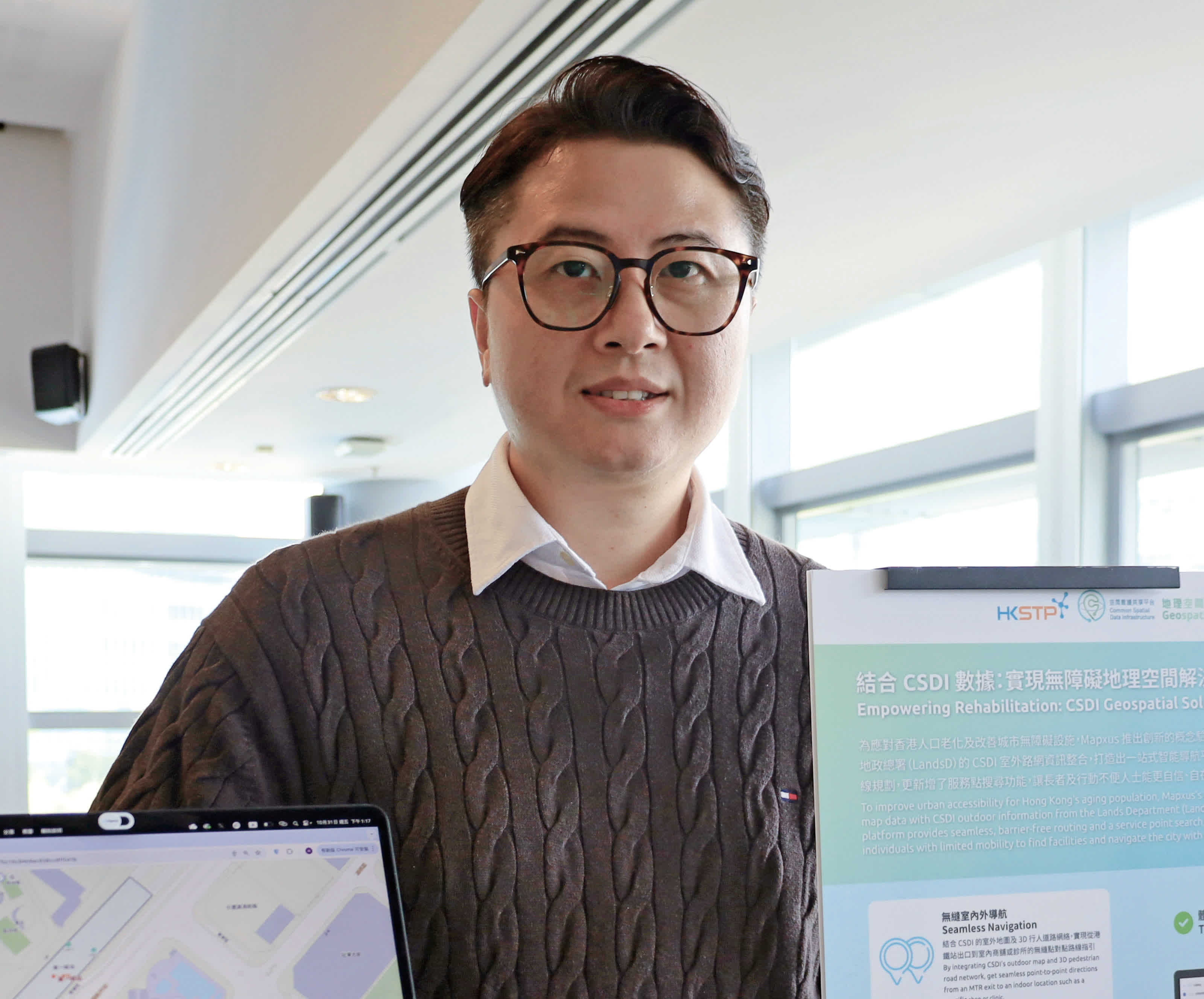 Maphive Technology Limited高級經理黃興霖指出,計劃所建立的高效協作生態對團隊幫助尤為關鍵。科技園公司與空間數據辦事處不僅每月組織進度會議,還建立有效的溝通機制,即時跟進項目的進度。「當我們需要理解NGO需求時,他們迅速協助我們對接社聯及相關機構。」這種跨部門、多層次的協同機制,使團隊在數據整合、產品優化與需求對接等環節獲得持續支持,逐步將概念轉化為落地的空間數據應用方案。