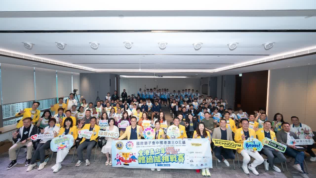 為鼓勵青少年培養恒常運動習慣、鍛鍊強健體魄及建立正面價值觀,國際獅子會中國港澳303區(下稱「獅子會」)11月1日假座觀塘綠景NEO大廈成功首辦「全港青少年體適能挑戰賽2025」。賽事反應熱烈,吸引來自全港多間中學的隊伍參與,結合力量、耐力與團隊策略,競逐各組別殊榮。活動同時為即將舉行的第十五屆全國運動會注入熱身動力,讓全港中學生齊齊「動起來」。