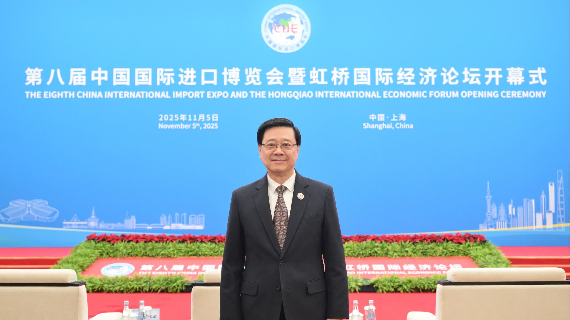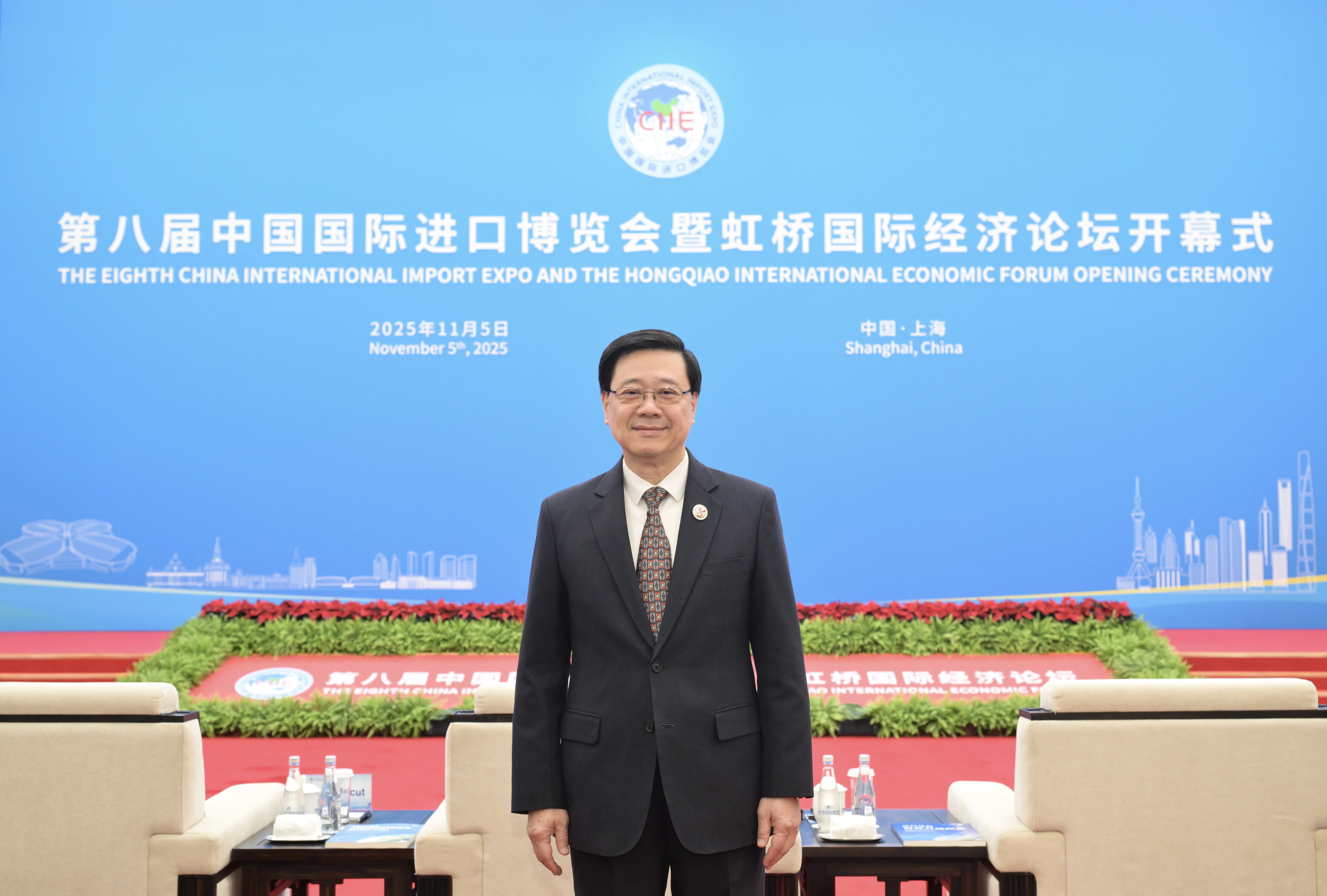 早上,李家超與商務及經濟發展局局長丘應樺一同出席進博會暨虹橋國際經濟論壇(虹橋論壇)開幕式。