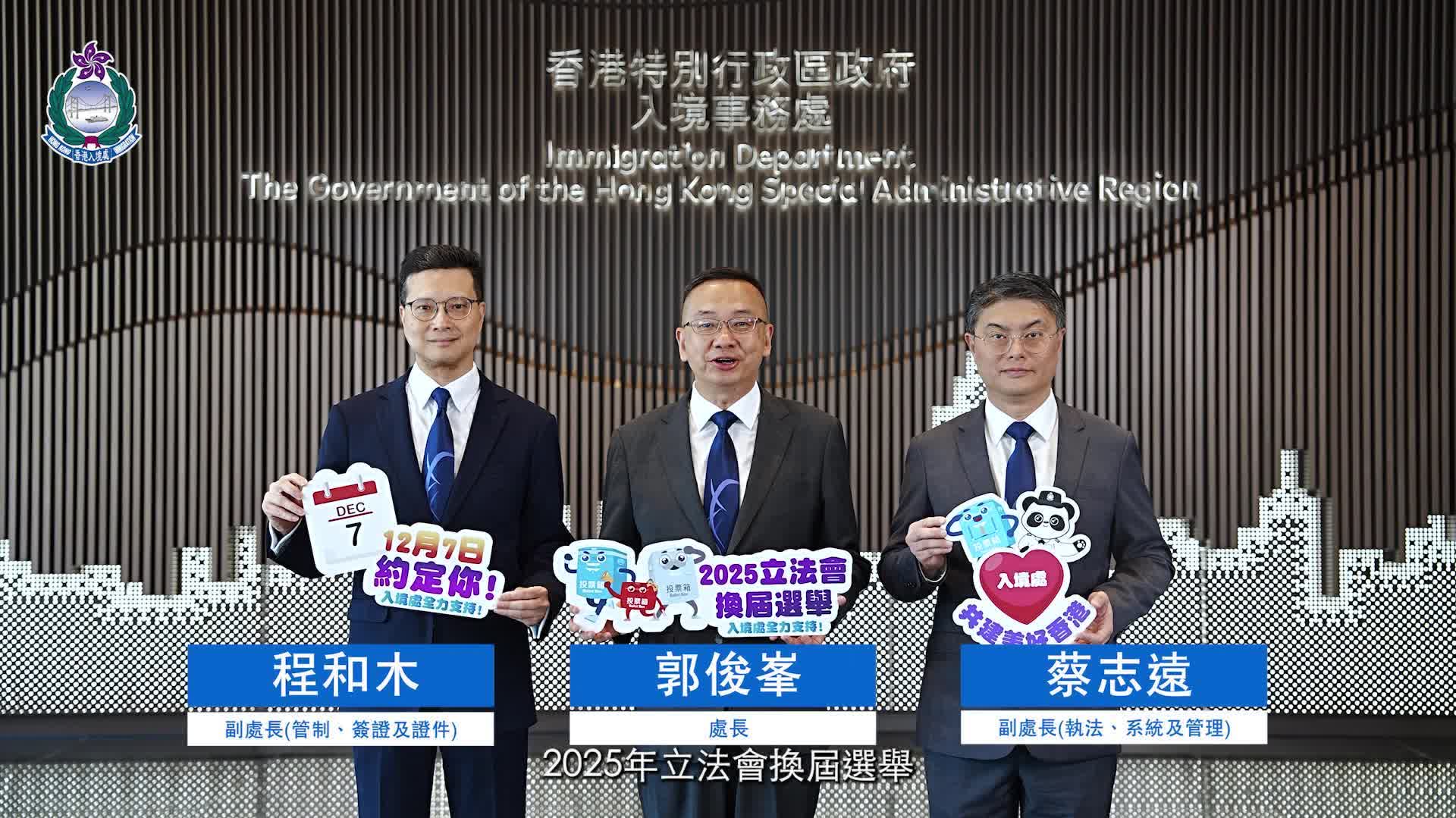 郭處長聯同一眾入境處高層人員齊心呼籲全港選民12月7日履行公民責任,積極參與2025立法會換屆選舉,踴躍投票,共建美好香港。