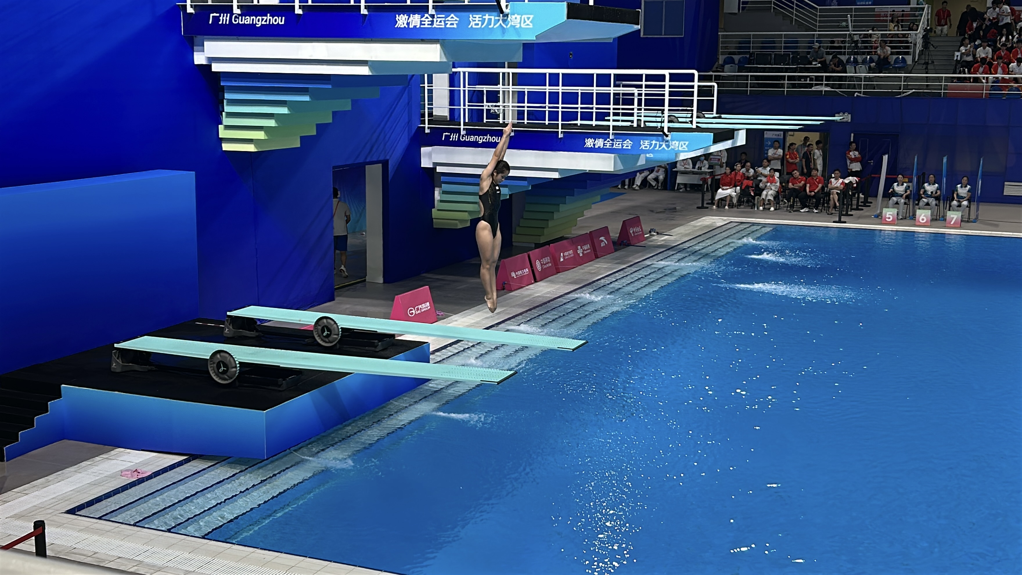 (大公文匯網記者 敖敏輝 廣州報道)5日晚,十五運會跳水比賽女子1米板決賽在廣東奧體中心跳水館舉行,香港跳水隊陳梓銘、王子依代表港隊參與角逐。最終,陳梓銘以總分240.5分的成績位列第13名,王子依以194.40分位列第19名。這是香港跳水運動員首次登上全運舞台。陳梓銘告訴記者,第一次參加全運會的比賽,自己的表現好於平時訓練水平,很滿意這個結果。中國香港游泳總會主席、香港跳水隊領隊鄧永康滿意隊員首秀,認為初登大舞台心理緊張在所難免,港隊發揮已比較理想。