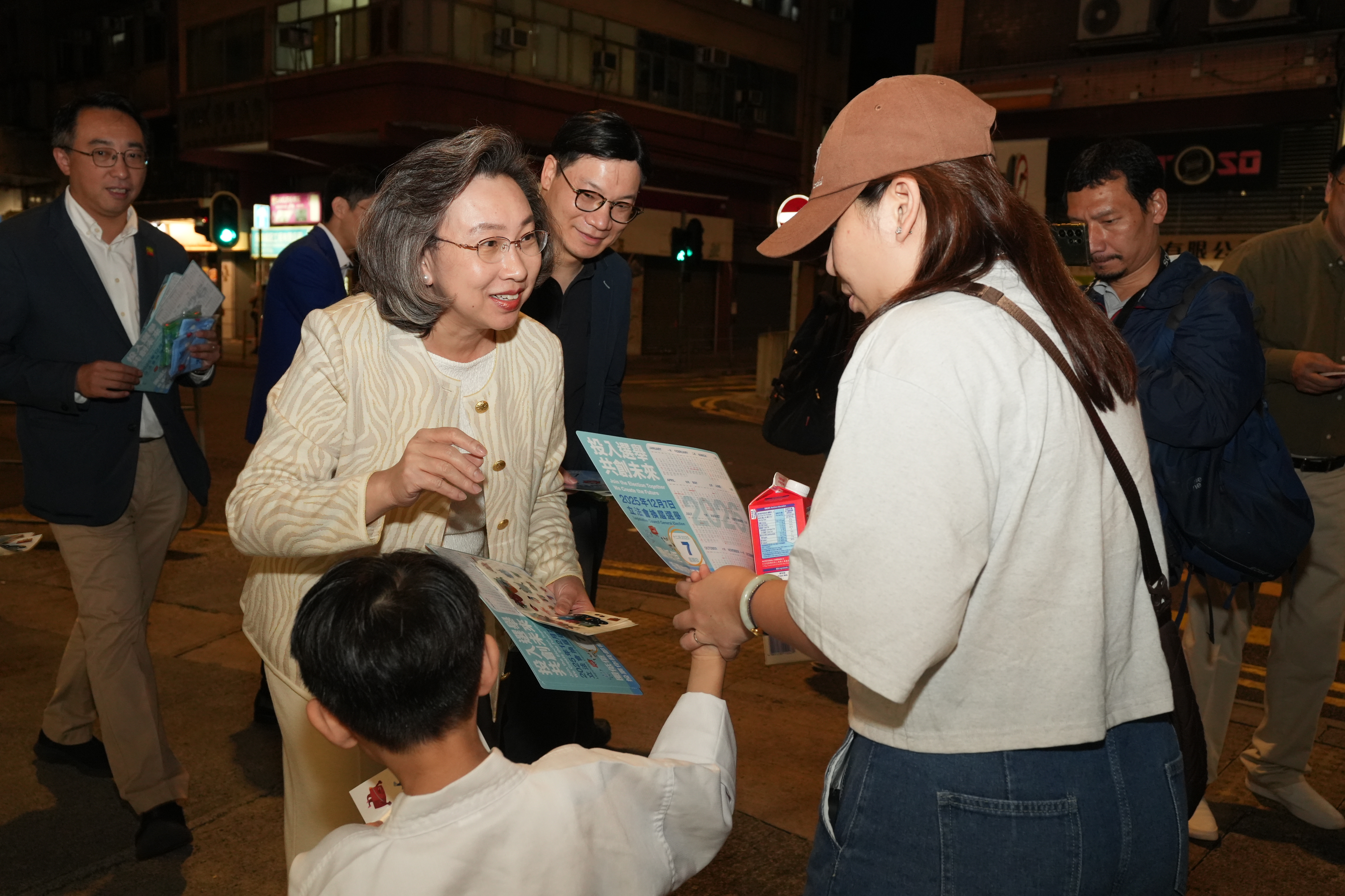 在街站期間,楊何蓓茵接觸的不少當區市民,對於12月7日齊投票的訊息已有一定的認識,其中,她提醒已居港滿7年的外籍人士,記得留意稍後收到的投票通知卡,前往指定投票站投票;她也向拖着媽媽的小朋友表示,雖然對方現時未有投票權,也可以在12月7日提醒父母到投票站投票。