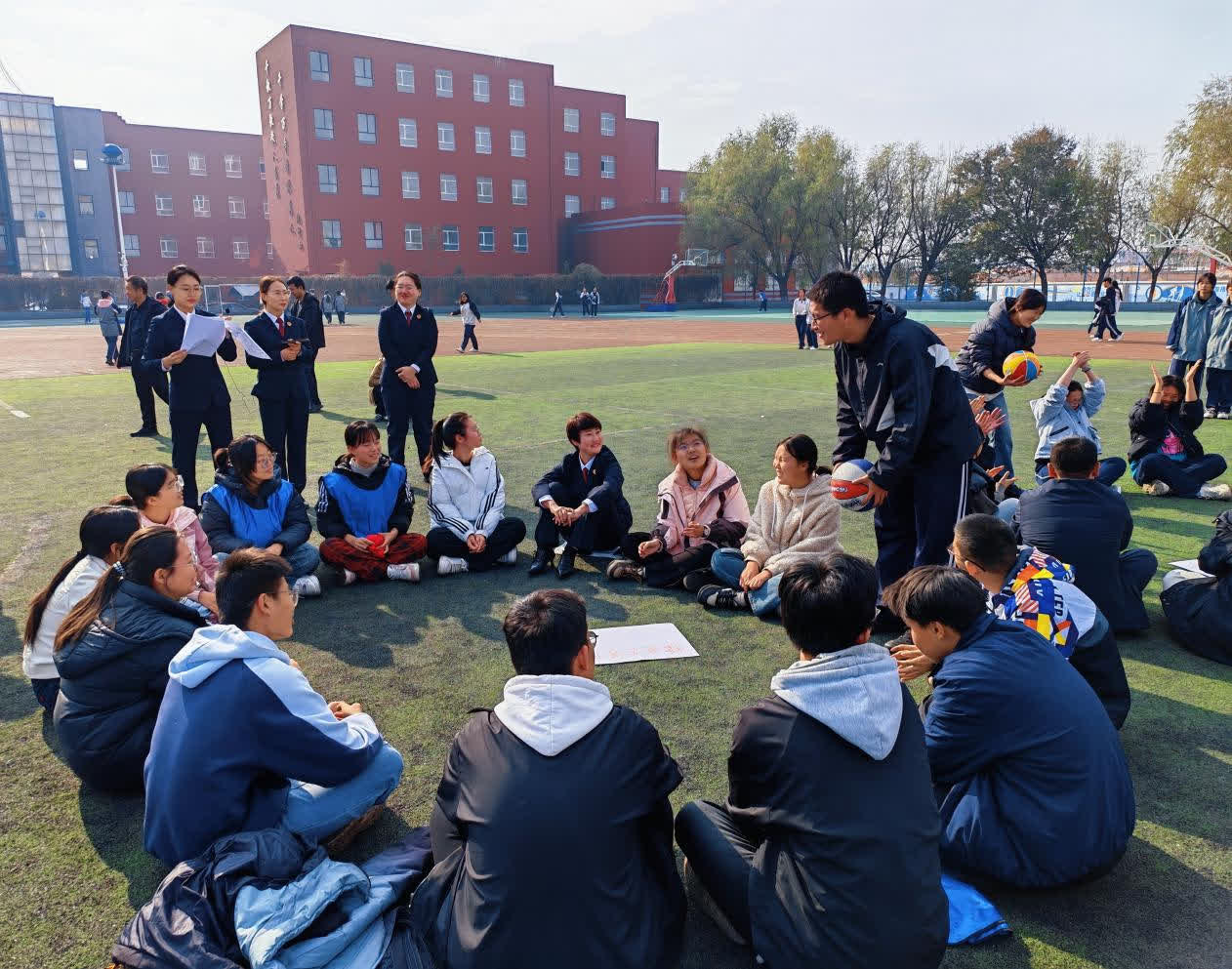 11月4日,烏蘭察布市豐鎮市第一中學的操場上格外熱鬧,豐鎮市人民檢察院黨組書記、檢察長劉彩霞以法治副校長的身份,帶領檢察官們走進校園,與豐鎮市一中校長一同策划了一場「沉浸式」法治互動活動。活動打破傳統宣講模式,由法治副校長、檢察官和一中校長分別與學生組隊,成立「懂法小分隊」「律政先鋒隊」和「班長說的都對」三支特色隊伍,讓法律知識在趣味比拚中深入人心。
