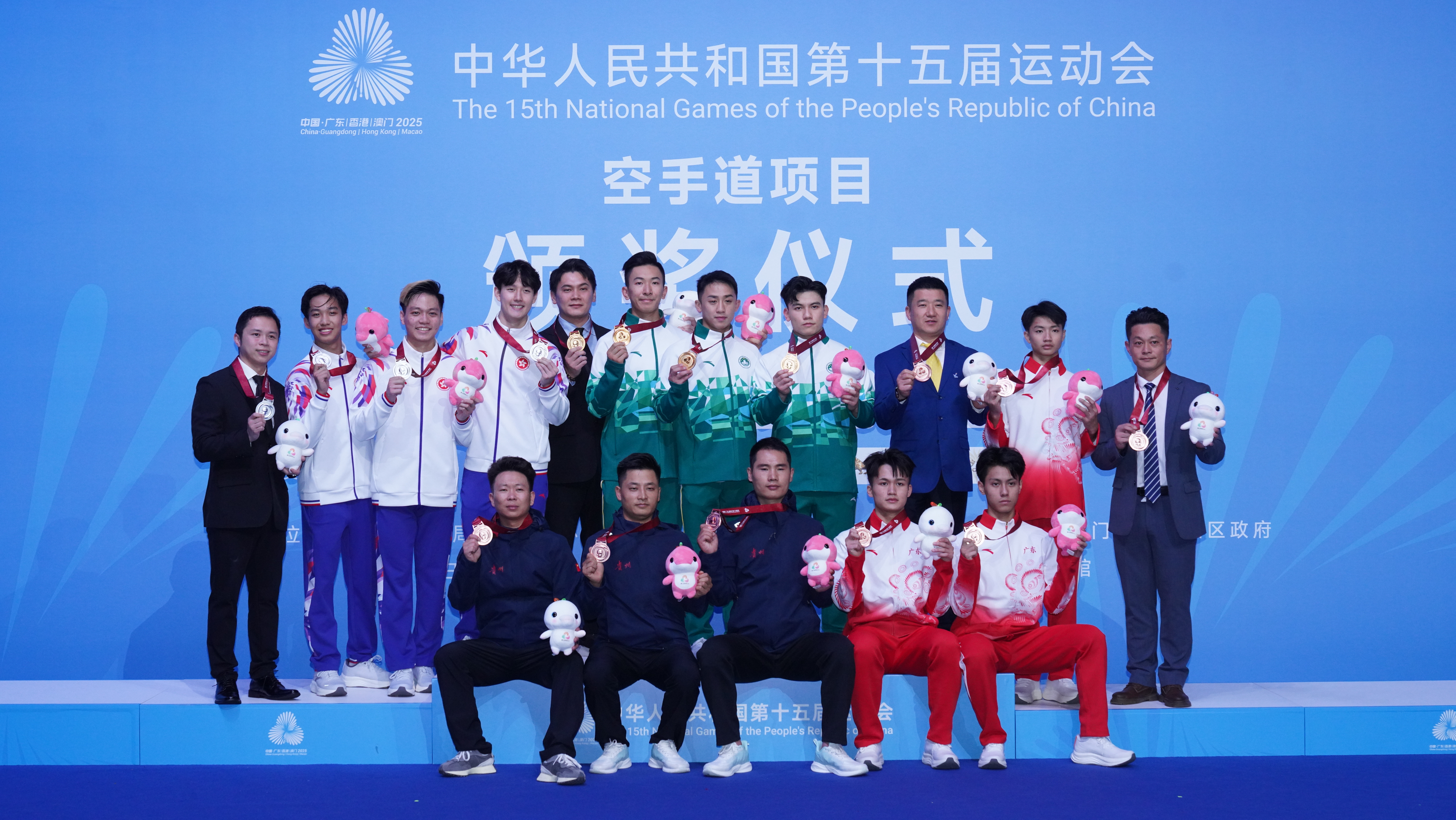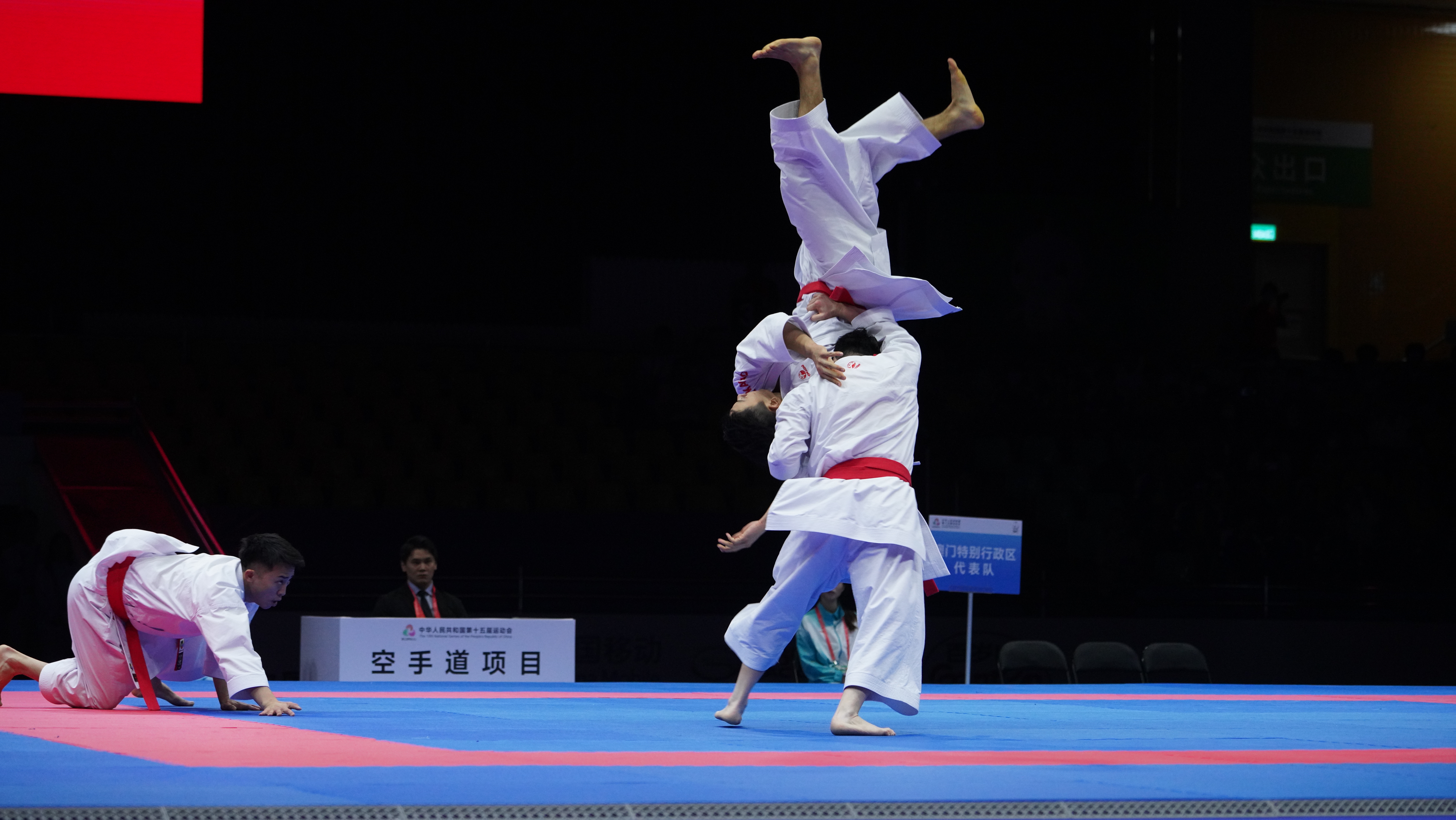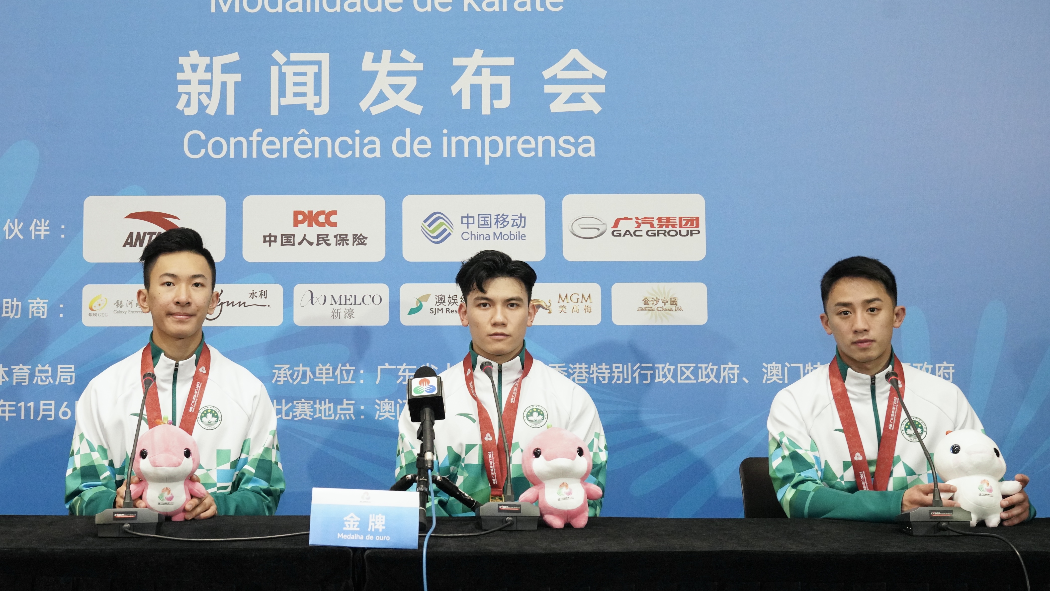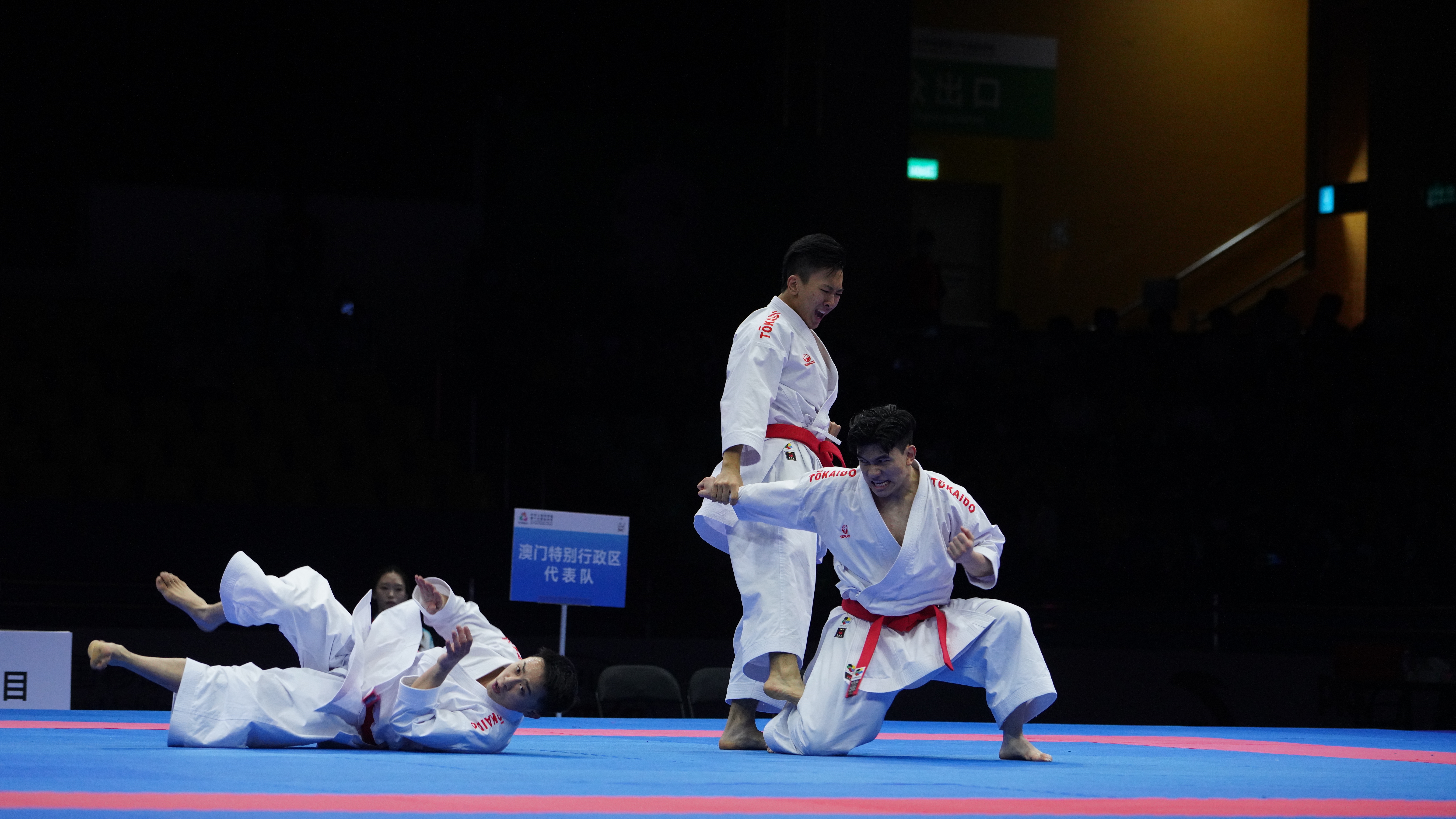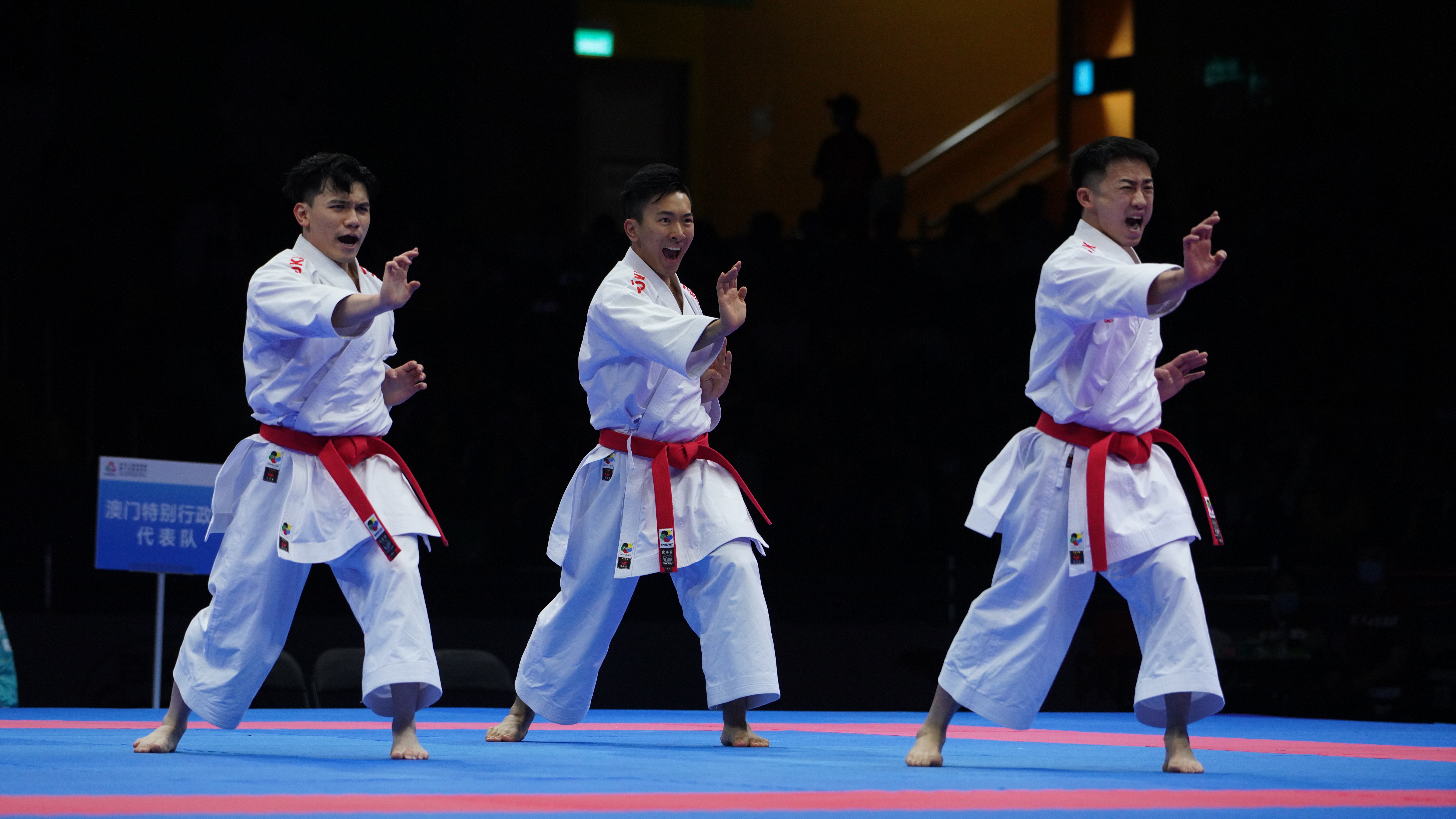 (大公文匯網記者 鍾佩欣)在第十五屆全運會空手道比賽男子業餘組團體型的項目今日(6日)舉行,由澳門運動員郭建恒、方文浩及鄭沘珞組成的澳門隊伍勇奪金牌,創下歷史佳績。賽後三位運動員分享感受時表示很開心能在澳門主場奪得獎牌,面對主場作戰的壓力,難免心情緊張,但觀眾的熱情支持成為最大動力,三位運動員特別感謝現場觀眾、志願者、工作人員,以及市民支持。