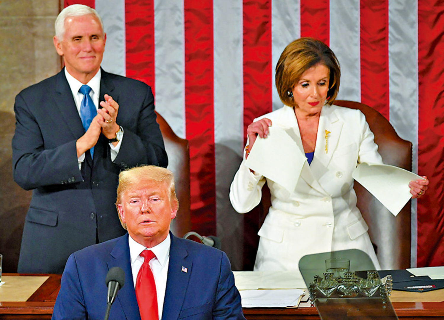 美媒表示,佩洛西近年與美國總統特朗普衝突不斷,曾在特朗普直播發表國情咨文時在其身後撕毀國情咨文稿。2021年1月6日美國國會暴亂期間,特朗普的支持者曾闖入佩洛西的辦公室。