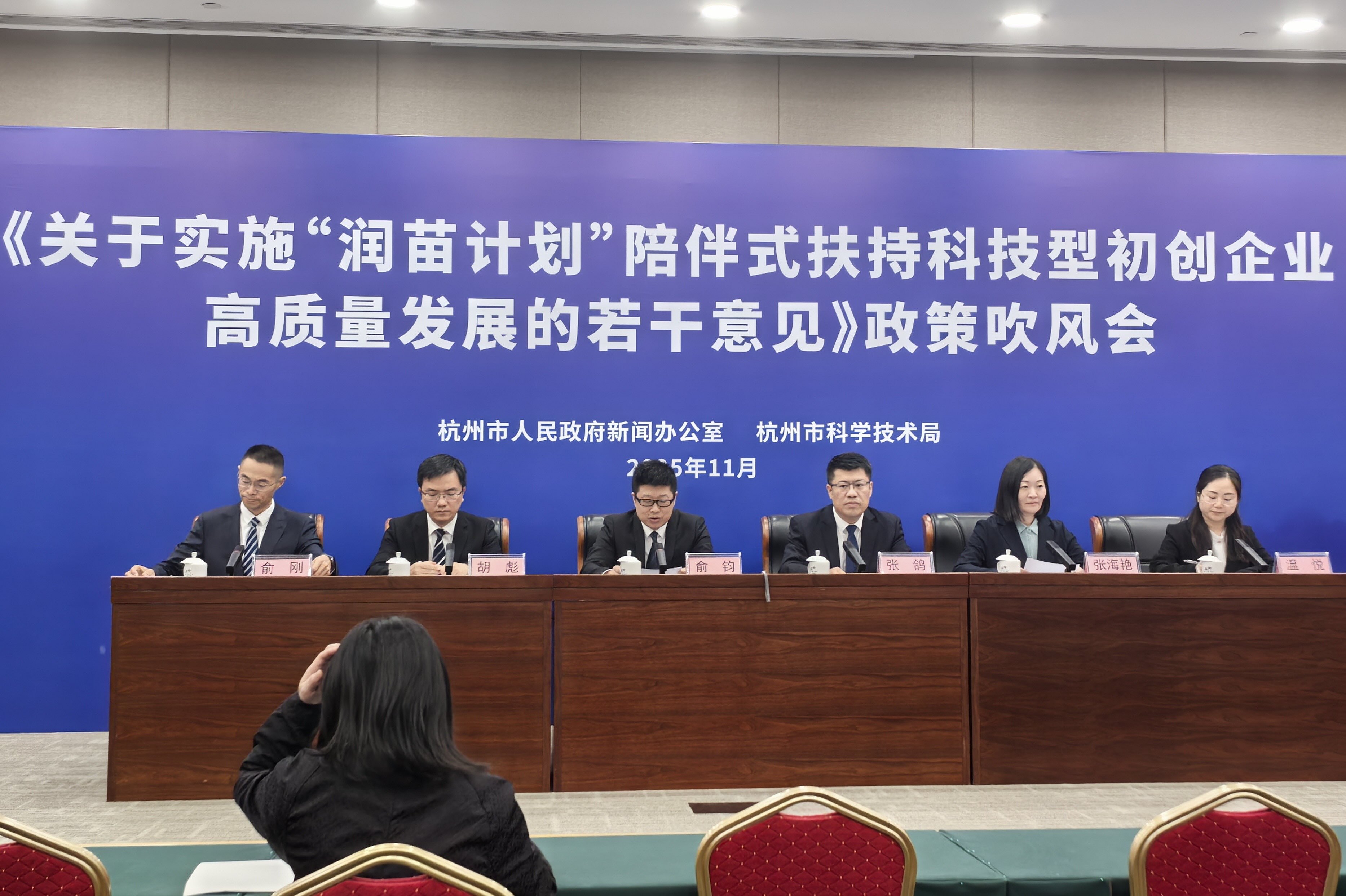 (大公文匯網 記者 連慜鈺)2025年11月29日起,杭州將實施《關於實施「潤苗計劃」陪伴式扶持科技型初創企業高質量發展的若干意見》(以下簡稱《若干意見》)。5日,杭州市政府新聞辦聯合市科技局召開政策吹風會,記者從會上獲悉,到2027年,杭州將培育科技型中小企業5萬家、「好苗子」企業3000家、高新技術企業2萬家、「新雛鷹」企業300家、科技領軍企業100家,年新引進35歲以下大學生35萬名,每萬人高價值發明專利擁有量69件,全市創業孵化空間達到1000萬平方米,形成科技型初創企業「鋪天蓋地」、科技領軍企業「頂天立地」的「金字塔」形企業梯隊。