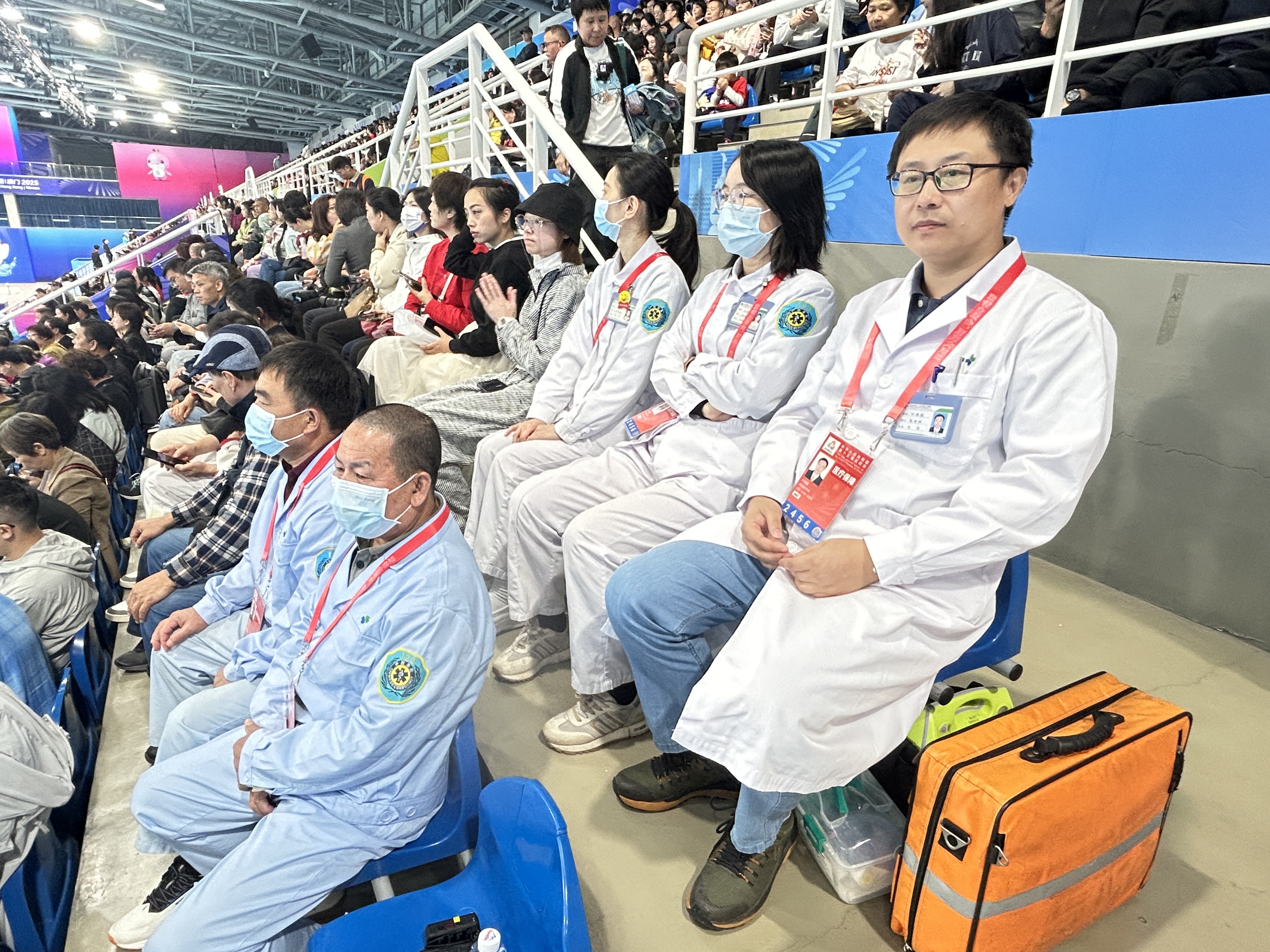 「觀眾區有4名醫生4名護士,以及2名擔架工,運動員區的醫療保障工作則由3名醫生3名護士負責,整體人員配備比較充足。」葉澄健說,廣州開發區醫院此前參與過廣州馬拉松、廣州網球公開賽、廣州亞運會等大型賽會的醫療保障工作,有着豐富的經驗,工作機制和流程成熟。