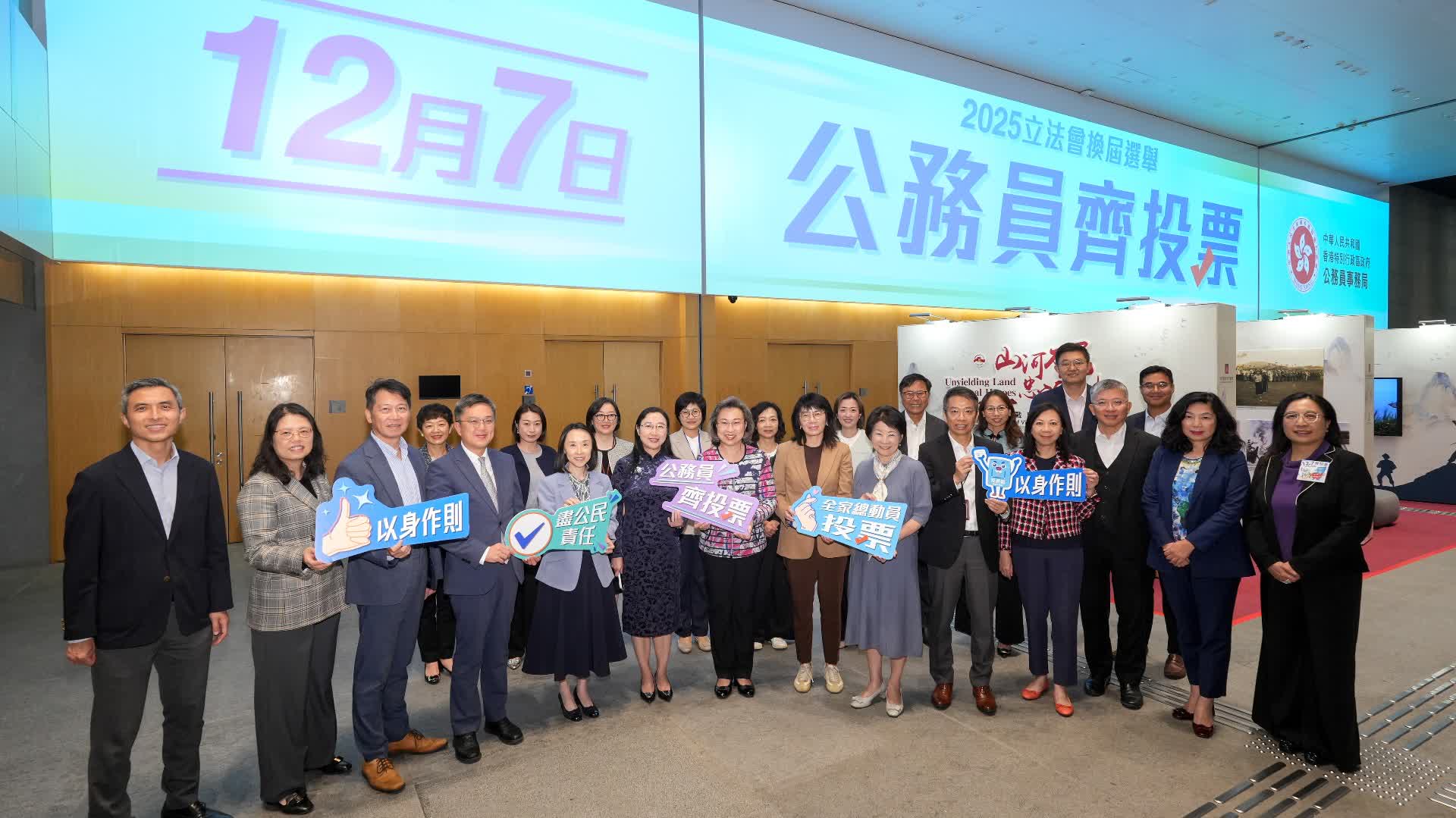 四年一度的立法會換屆選舉是大事,將產生90位立法會議員,與政府一起推動實現良政善治。在選舉尚餘30天就舉行這個關鍵時刻,楊何蓓茵和公務員事務局專班成員齊聲喊出「眾志成城,做好選舉」的口號,她和公務員團隊必定會團結同心,合力落實好以「公務員齊投票」為主軸的一系列宣傳和推廣工作,並於選舉日以身作則去投票,與廣大市民一同建設更美好的共同家園。
