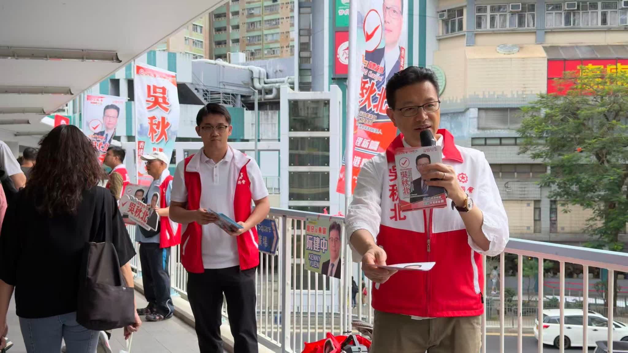 至於早前宣布連任當區立法會議員的工聯會會長吳秋北,近日先後在灣仔及炮台山街站嗌咪,向市民爭取支持,其間獲多名區議員站台支持。他指自己長期關注港島東區交通服務網絡質素,已推出多項倡議獲得政府接納。展望未來,自己正積極推動一系列具前瞻性的交通改革,包括放寬乘車優惠,及拓寬維園至東岸公園的連接路段等,以確保港島東區市民安心出行。