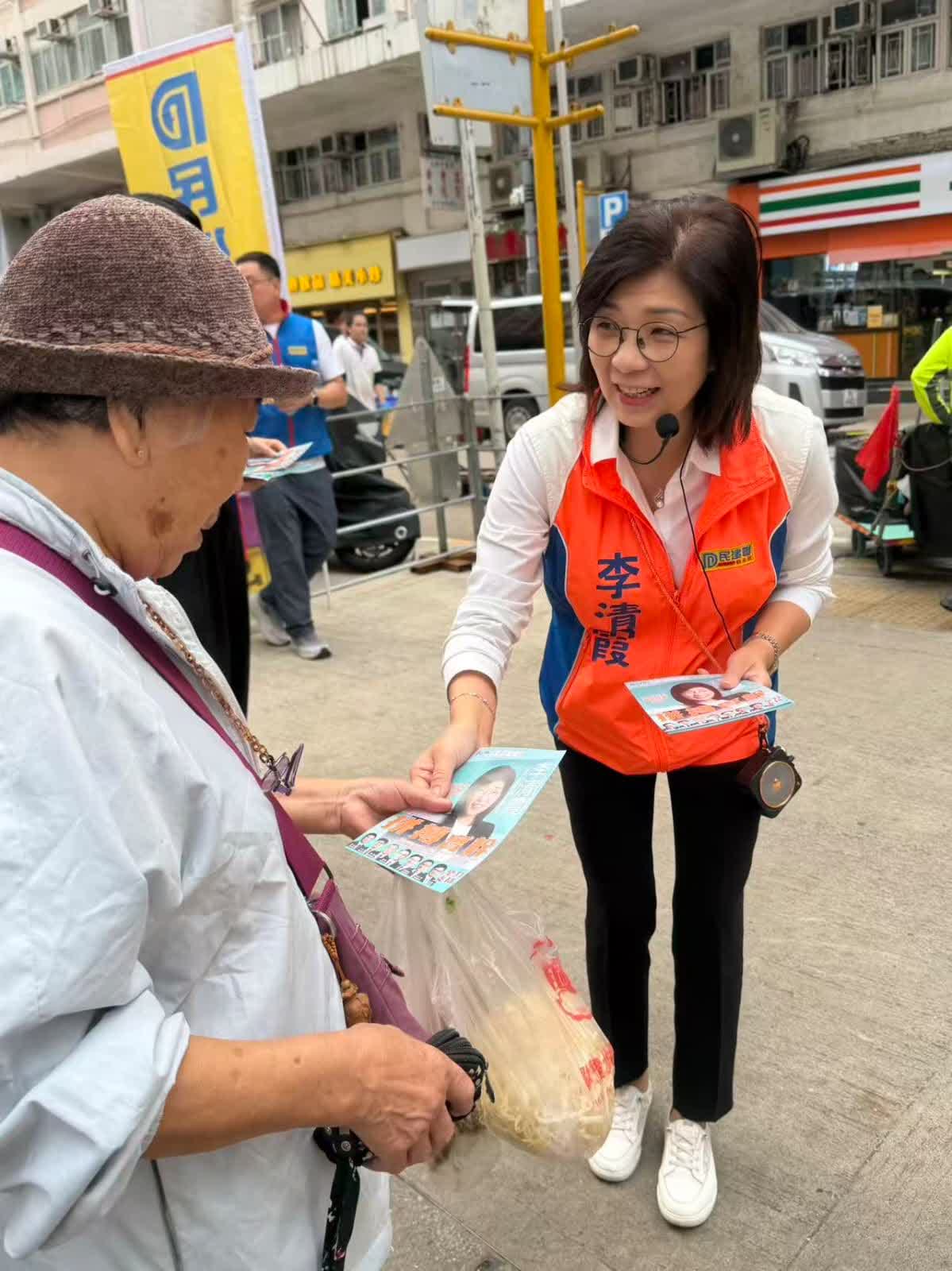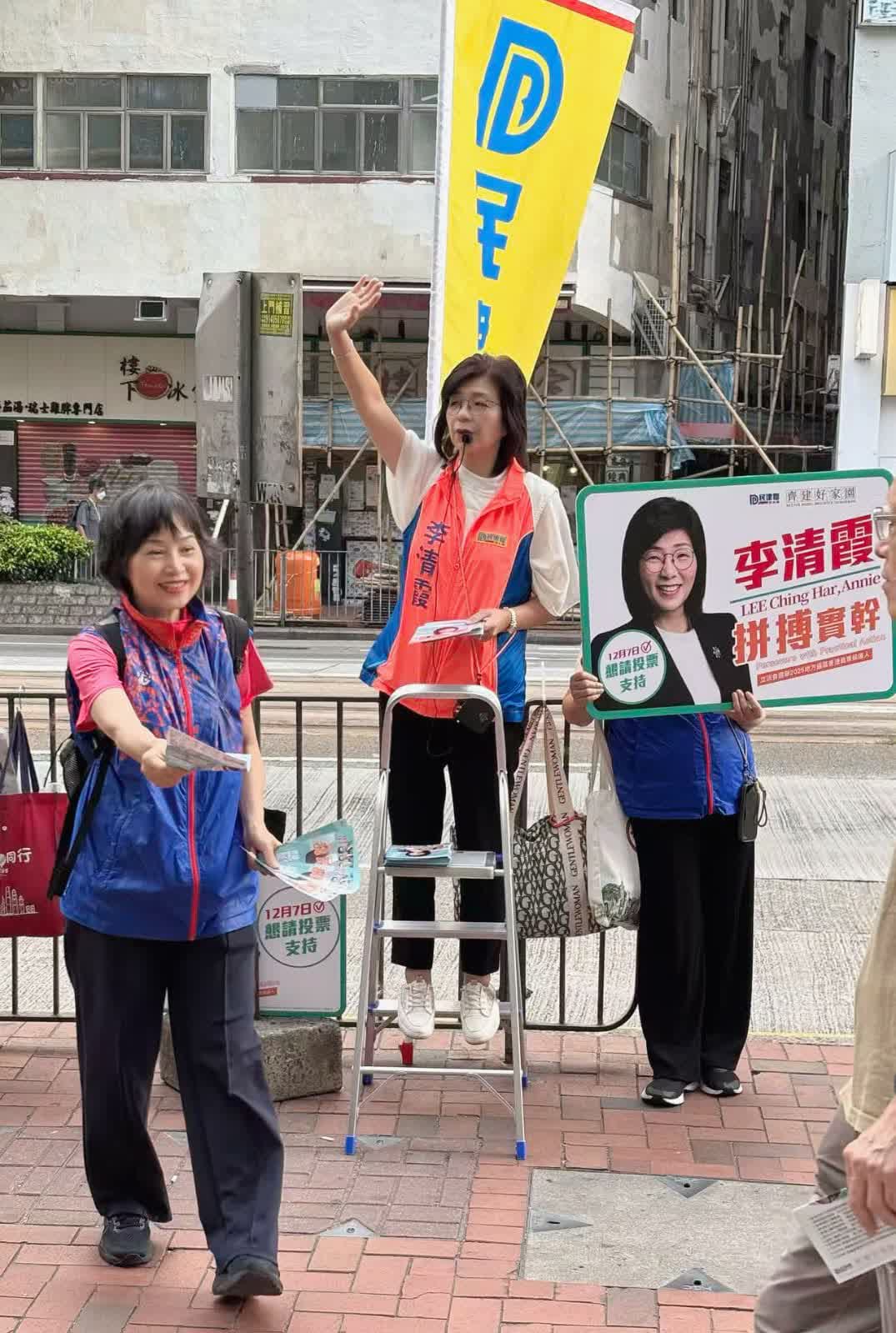 同區候選人李清霞來自民建聯,同樣是現任東區區議員,近日亦馬不停蹄開展宣傳工作,不時現身炮台山及北角等街站。她指自己出身基層,擁有豐富的地區工作經驗,關注民生。在過去22年內,無論黑雨、黑暴、疫情、十號風球抑或是早前的鯽魚涌拆彈事件,自己一直秉持「拼搏、實幹、勤奮」的理念,緊守崗位。李清霞呼籲選民積極投票,為建設香港出一分力。