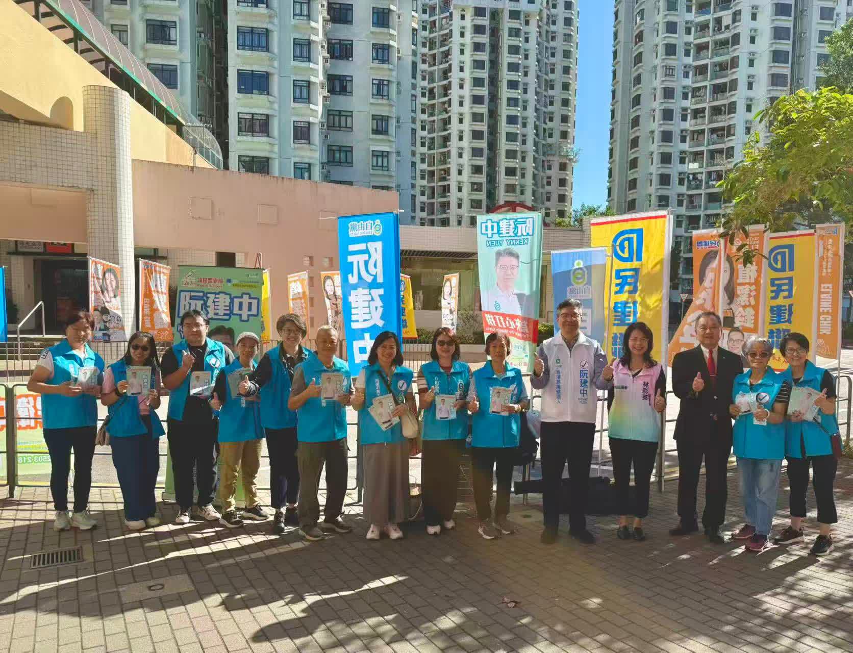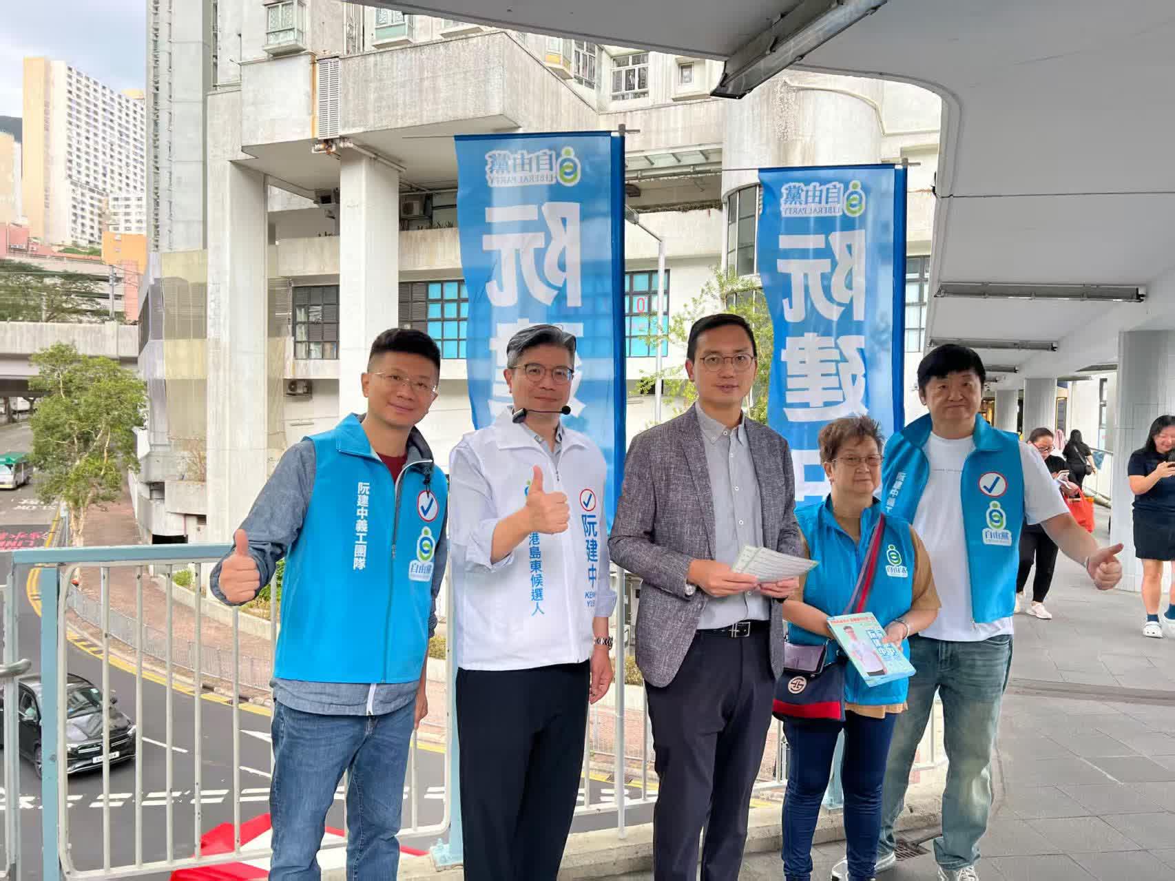 候選人方面,自由黨東區區議員阮建中以「燃點中產希望 開拓夾心出路」為口號,連日在街站與街坊交流。他承諾捍衛中產夾心及關顧弱勢社群,會重點關注青少年向上流的機會及長者生活問題等。阮建中指今次地區直選的競爭十分激烈,希望自己能用政綱說服選民,力爭憑實力獲得選民支持。至於拉票方式,他表示會以傳統街站為主,並配合網絡宣傳,以接觸不同種類的選民。