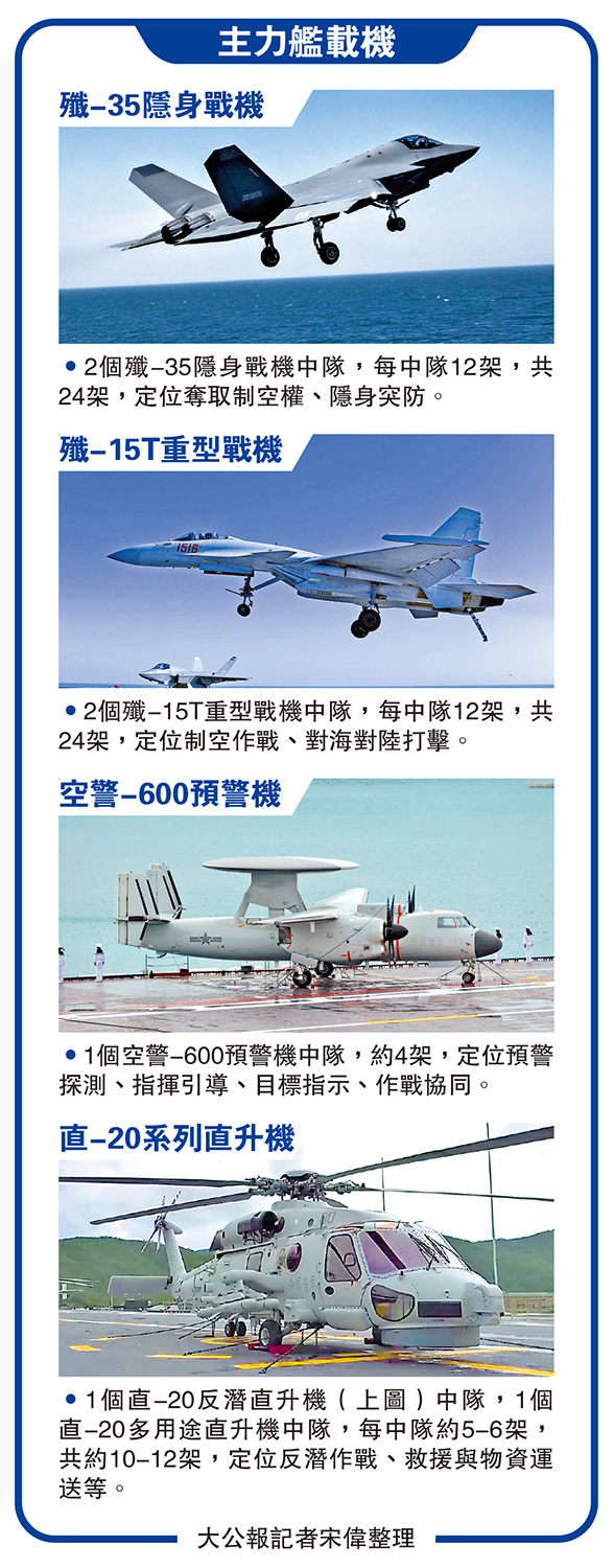 福建艦的各型戰鬥機,具備制空、制海、制電磁的綜合戰力。殲-35隱身戰機,可利用隱身優勢高速突防,癱瘓敵軍艦隊防空系統,奪取制空權。殲-15DT電子戰機可伴隨戰鬥機前出,捕獲、解析、鎖定敵機敵艦雷達信號,實施電磁干擾壓制。