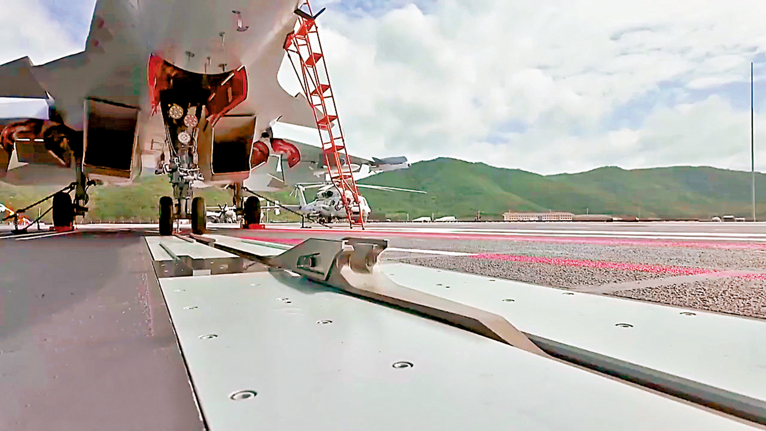 福建艦服役,代表航空母艦、艦載戰機、電磁彈射系統三者的完美組合運用。艦載機的數量、門類型號、起降效率,直接關乎航母的戰鬥力高下。福建艦配備3部電磁彈射器,兩部位於艦艏,一部位於艦舯左舷。前兩部彈射器中間,設有電磁彈射控制室,平時降至甲板下,使用時從甲板下方升起。