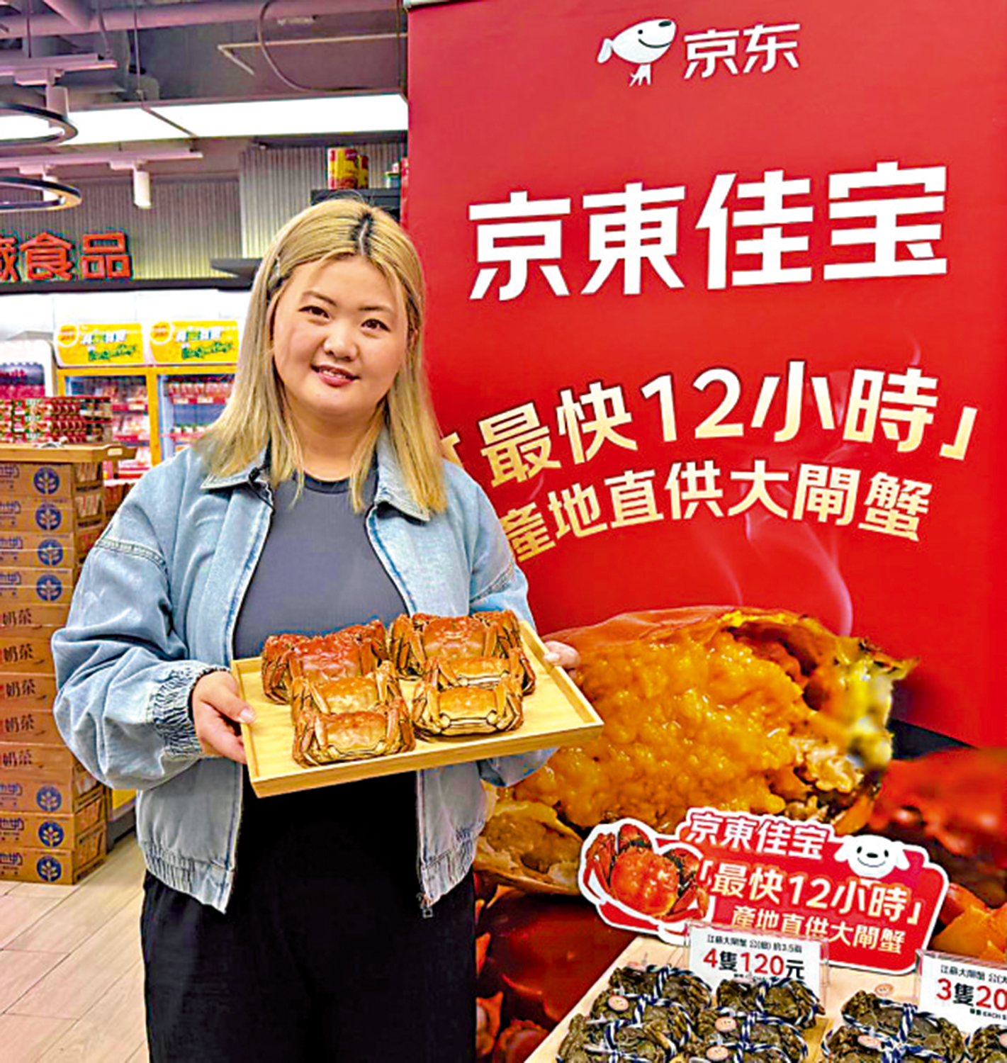 林凱欣表示,京東自今年8月完成收購佳寶以來,佳寶已引進過百款來自京東供應鏈的商品,包括生果、蔬菜、肉禽蛋、海鮮水產等。她提到,每隻大閘蟹配備專屬溯源扣,消費者掃碼可查閱蟹源地信息。除了今次引入大閘蟹,佳寶會繼續搜羅銷售其他鮮活食品的可能。