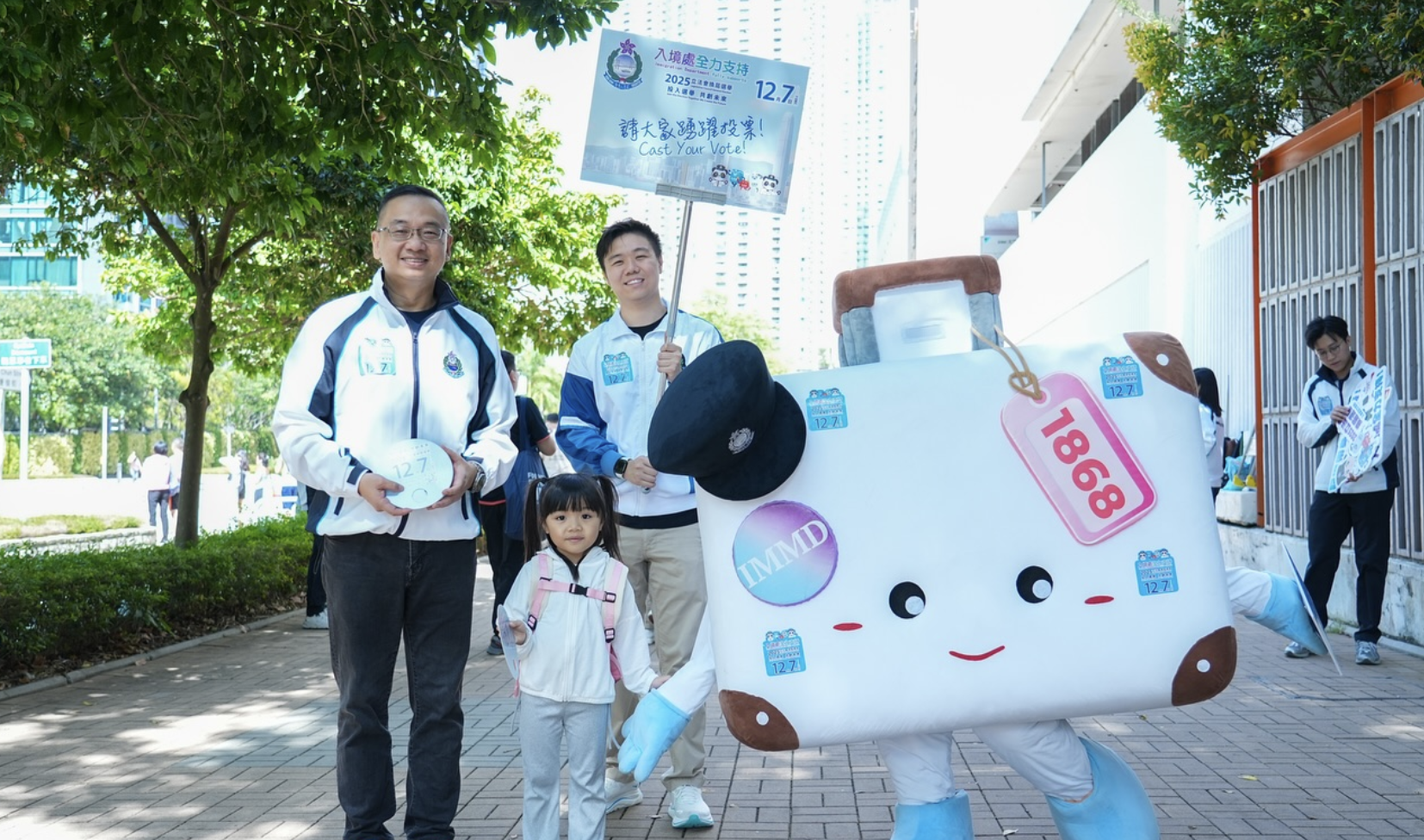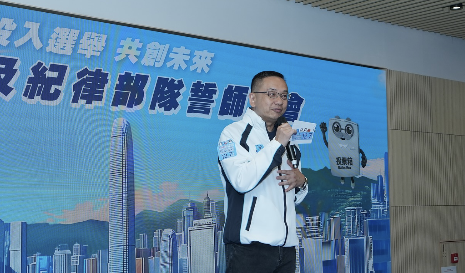 大公文匯全媒體報道,香港第八屆立法會選舉定於12月7日舉行。為呼籲投票,「投入選舉 共創未來」保安局及紀律部隊誓師大會今日(8日)上午10時於紀律部隊人員體育及康樂會舉行。入境事務處處長郭俊峯連同使用服務人士委員會委員、青少年領袖團總監、副總監和工會代表一齊出席活動。