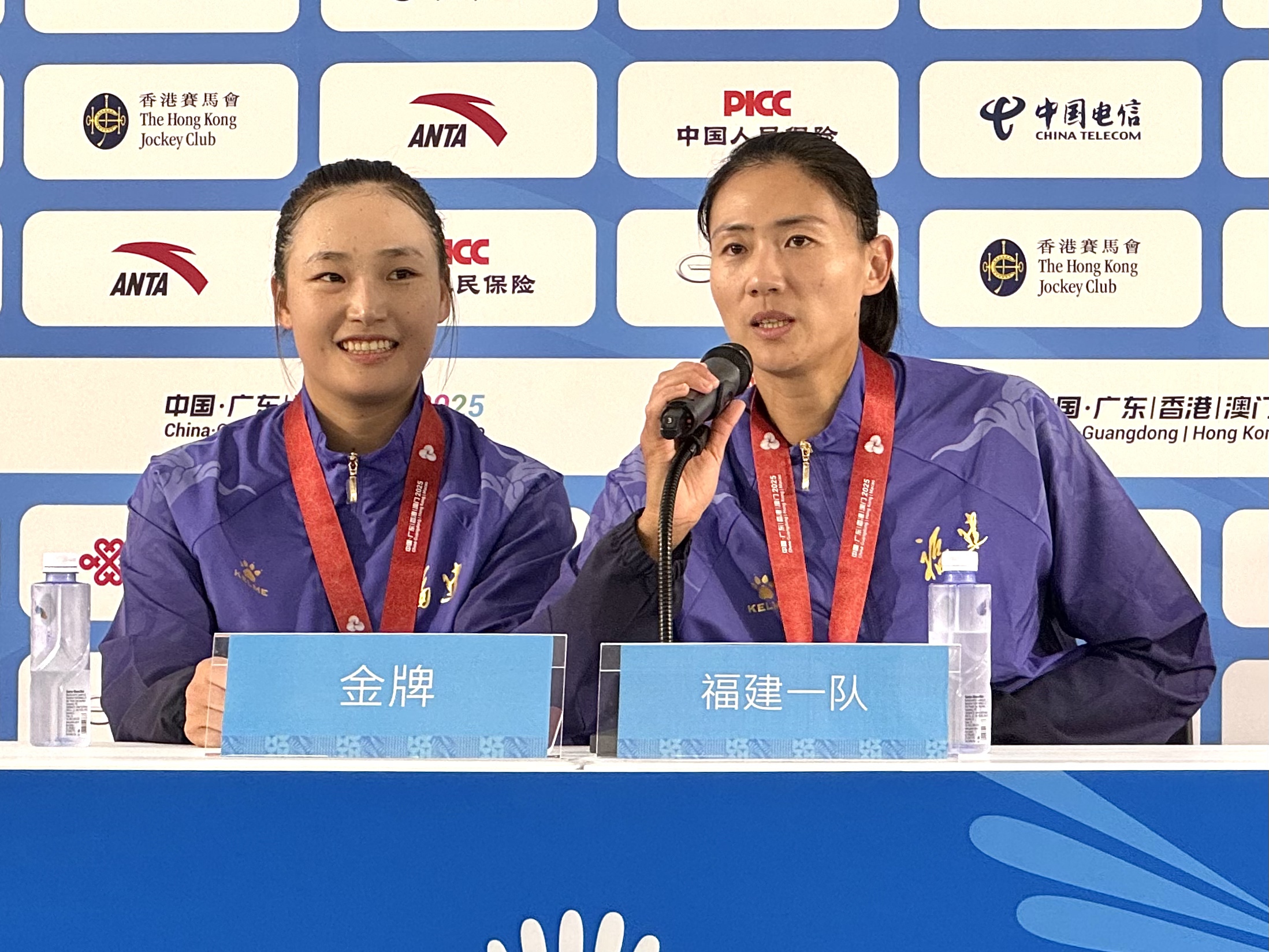 賽後獲獎運動員們接受媒體訪問。獲得金牌的福建一隊隊員表示,很榮幸能參加香港賽區首個開賽項目,整個賽程中衣食住行的保障均十分到位,這一站比賽大家都是精心準備,獲獎後感到非常圓滿。隊員們亦指出,在決賽前的最後一周心情很忐忑,既因比賽激動,又因備賽壓力而煎熬,今天賽事結束「大家可以小解放一下」。