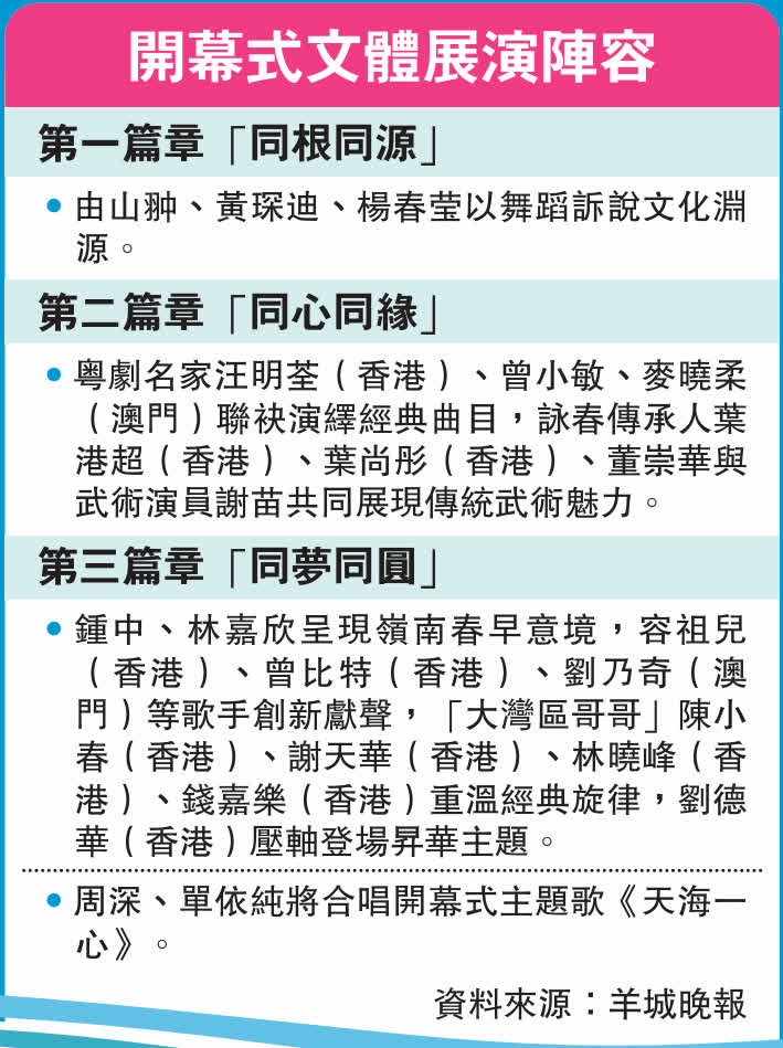 這場彰顯家國情懷、灣區魅力、體育之美和科技之光的視聽盛宴,將共同書寫粵港澳三地同心「圓夢」的歷史新篇章。