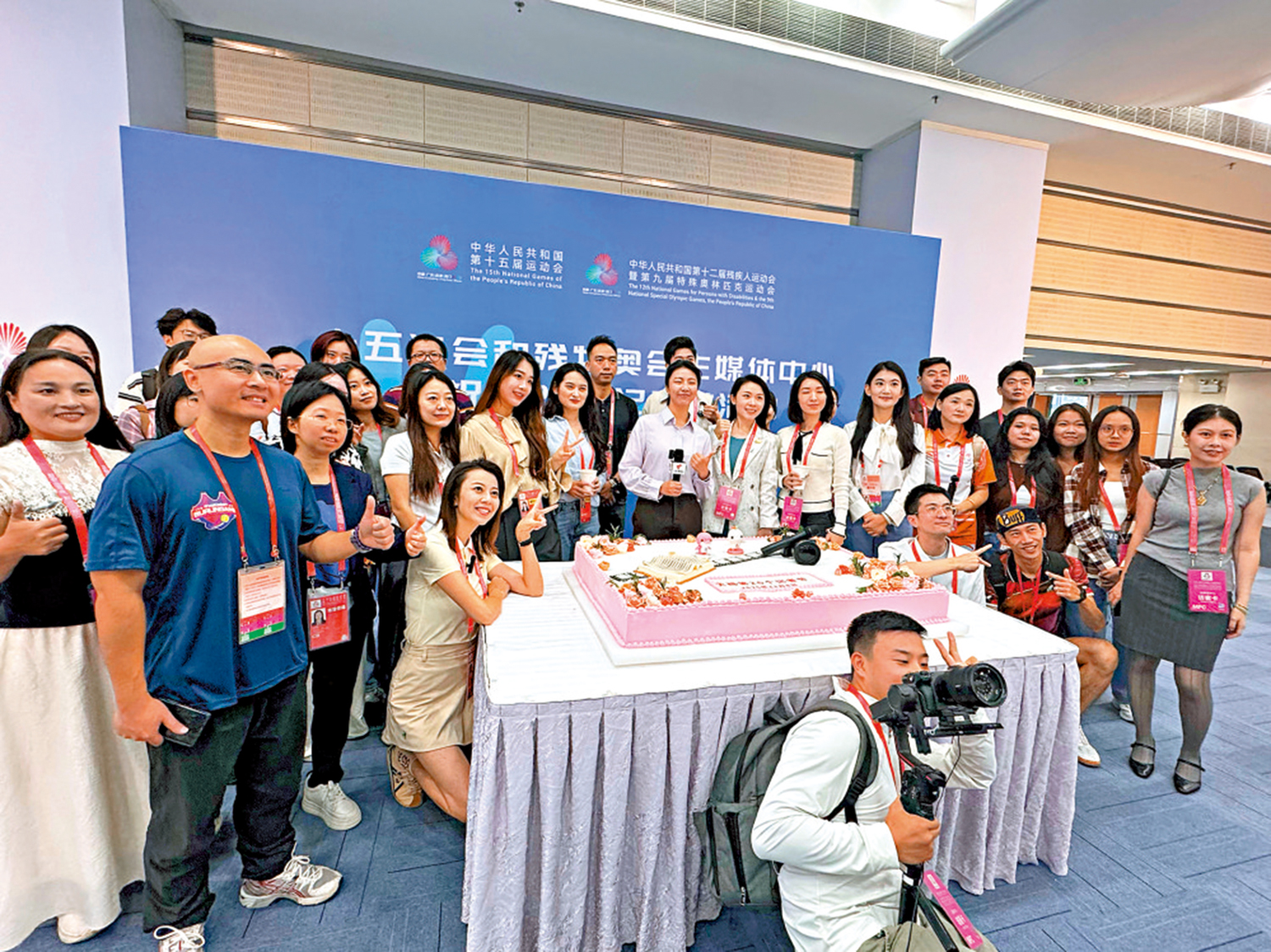 從北京來廣東報道全運會的新華社記者高尚笑言,11月8日記者節是她的生日。「媽媽還說我真會選日子。」她說,雖然剪片到凌晨有點累,但看到這麼多同行一起慶祝,還是覺得特別溫暖、幸運。「在廣東過節感覺很熱情,這裏體育氛圍濃、飲食又好,覺得幸福。」