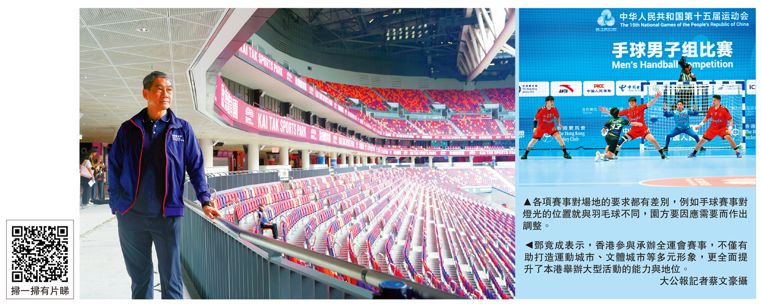 啟德體育園總監鄧竟成接受《大公報》訪問時表示,此次三地合辦的全運會不僅是一場體育盛事,更是粵港澳大灣區體育文化交流的重要契機,「不僅讓我們香港的運動員得以在主場環境中參與各類賽事,獲得更多寶貴的競賽機會,最重要的是,讓國家和世界看到香港舉辦大型活動的能力和地位。」