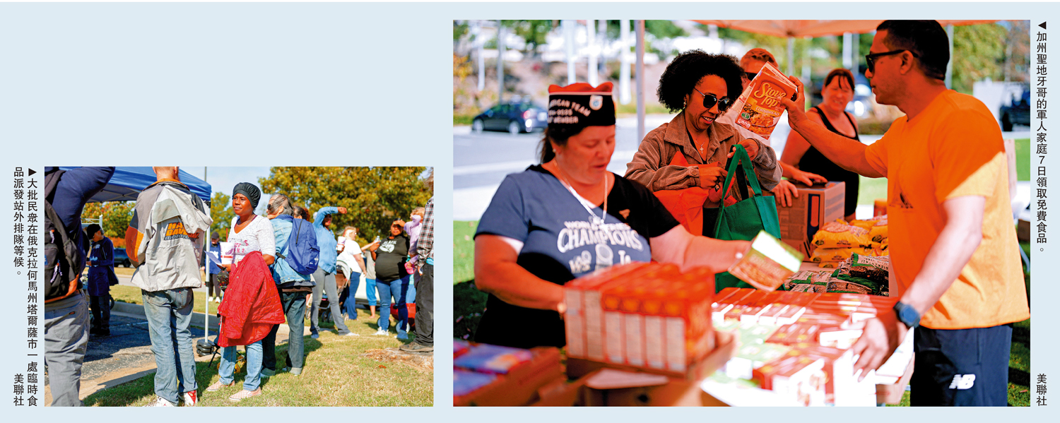 因資金耗盡,「食品券」計劃11月1日起已暫停發放救濟金。負責監管這一項目的美國農業部數日前表示,將提供46.5億美元緊急資金,以維持11月約一半的食品救濟金的發放。