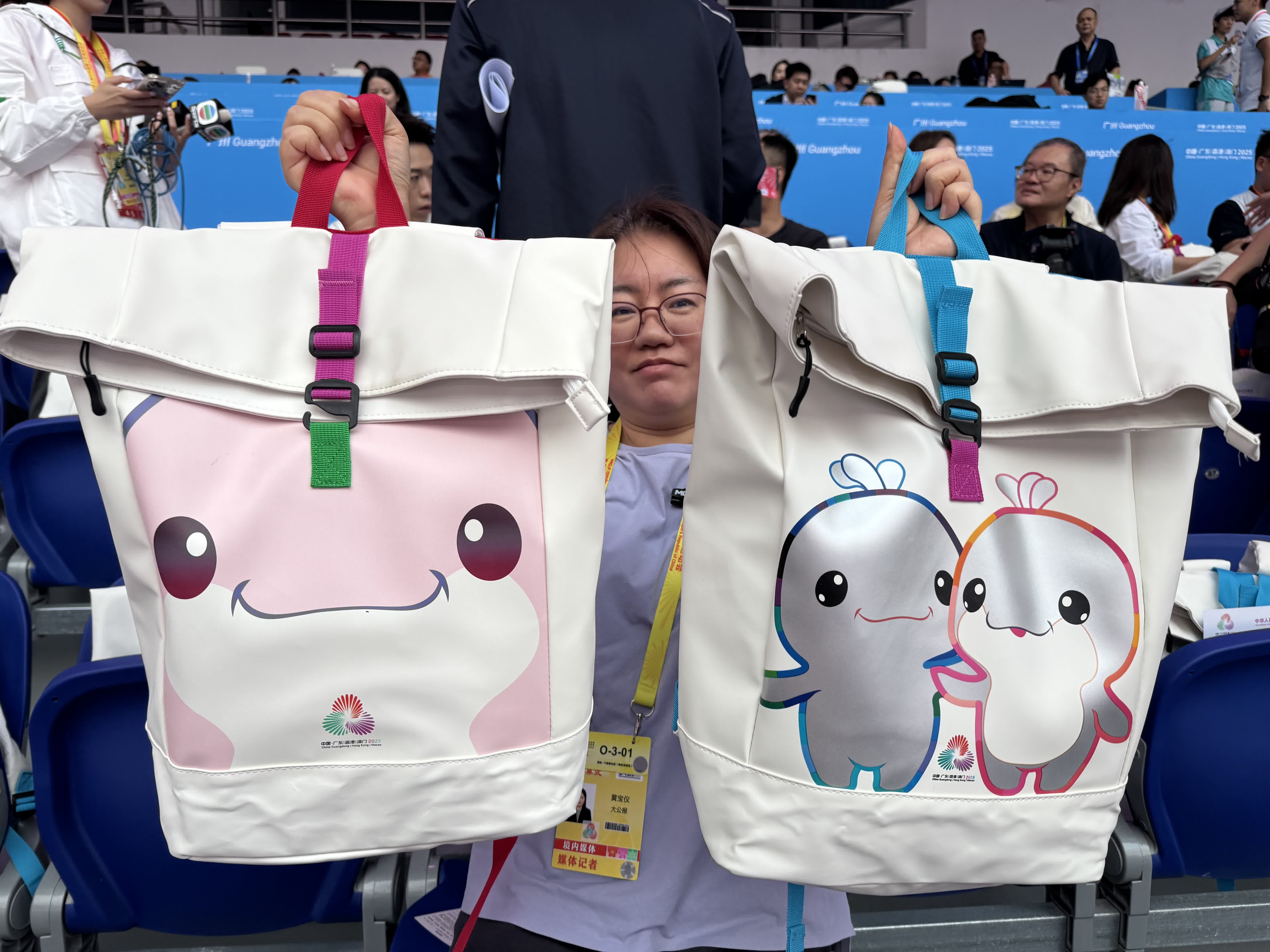 記者當場開箱解鎖驚喜:禮包內不僅有牛肉乾、麵包等補充體力的能量食品,還有廣州傳統點心薩其馬,一口香甜盡顯「食在廣州」的地道風味。除了舌尖美味,大會還貼心備好國旗、會旗,方便觀眾為盛會喝彩;濕巾、雨衣、垃圾袋等實用好物也一應俱全,讓觀眾在沉浸式感受盛會魅力的同時,更能體會到主辦方的細緻用心。