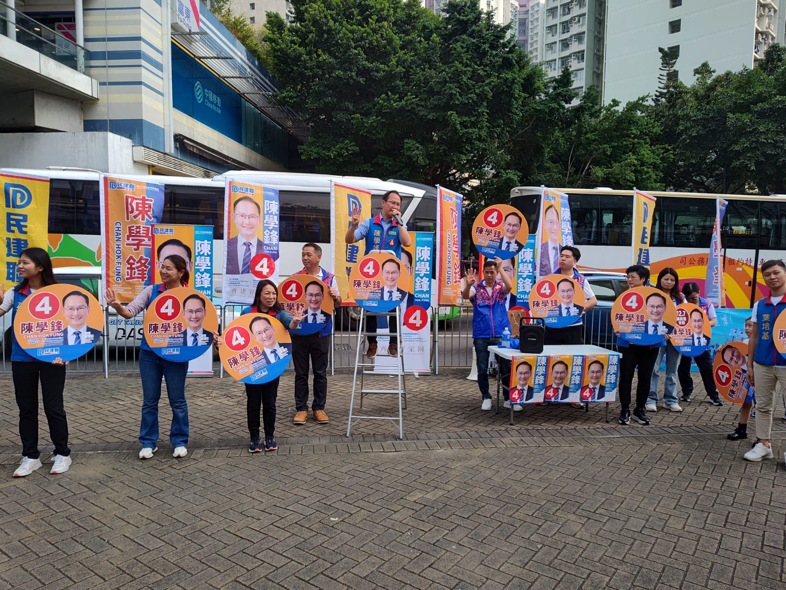民建聯副主席、第七屆立法會議員陳學鋒介紹,其政綱「三位一體」,交通、經濟、青年環環相扣。他促請政府年內公布南港島綫西段路線圖,盡快諮詢。除此之外,陳學鋒還建議船公司開發非營運收入減低票價,並爭取港鐵東涌延伸綫優先開通東涌東站。